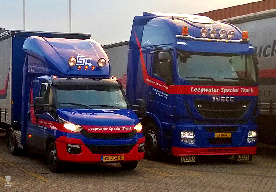 Het nieuwe drietal werd afgeleverd door Iveco Schouten in Alblasserdam. De drie nieuwe voertuigen vormen een uitbreiding van de vloot van Leegwater Special truck BV. Het bedrijf werd opgericht in 1978 en begon met een personenauto met aanhangwagen. Sneltransporten door heel Europa waren het specialisme en dat is in al die jaren nooit veranderd. Daarnaast biedt het bedrijf vandaag de dag een breed scala aan diensten waaronder ADR-transport, groupage vervoer, op- en overslag, exceptioneel transport en intern transport van onder andere machines. Met een zeer divers wagenpark van kleine bestelwagens tot vier-assige trekkers en zware autolaadkranen met een bereik tot 32 meter heeft Leegwater Special Truck B.V. altijd het juiste materieel beschikbaar.