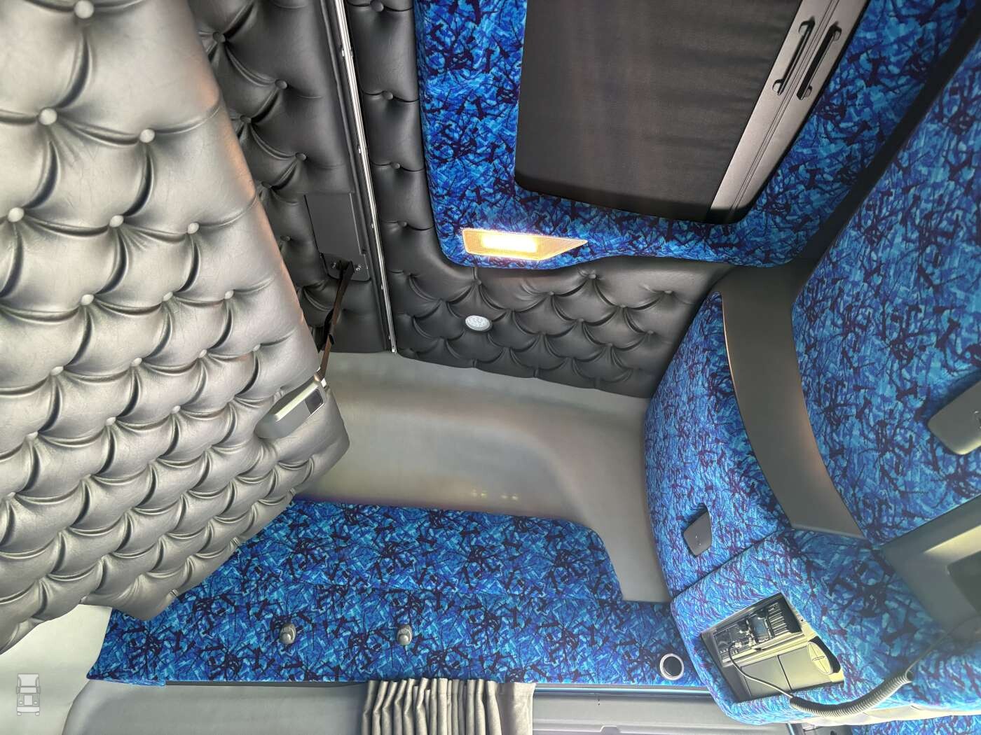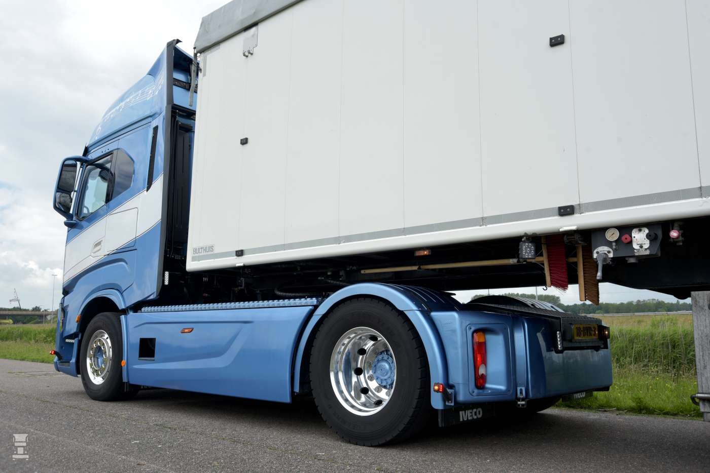 De truck af fabriek voorzien van een extra brandstoftank aan de achterzijde, waardoor er in totaal maar liefst 1350 liter brandstof getankt kan worden. Dat is heel bijzonder, want de truck is ook voorzien van een hydrauliekset voor de aandrijving van de moving floor trailer. De hydrauliek werd opgebouwd door RST in Geesbrug. Dit bedrijf maakte ook de strakke tranenplaat op het chassis. Verder is de Iveco voorzien van een stoere lichtbak, een LED lichtbalk, verstralers, zwaailampen en twee luchthoorns. Verder werd de linker zijfender aangepast waardoor deze nu ook opent. Al deze aanpassingen werden uitgevoerd door IVECO dealer Cornelis Bedrijfsauto’s. Vervolgens werd het interieur aangepast aan de speciale wensen van de eigenaren door Super VK Design in Harkema.