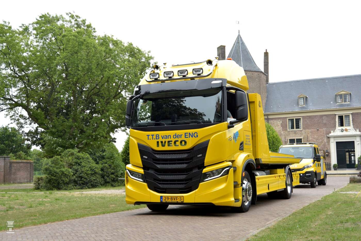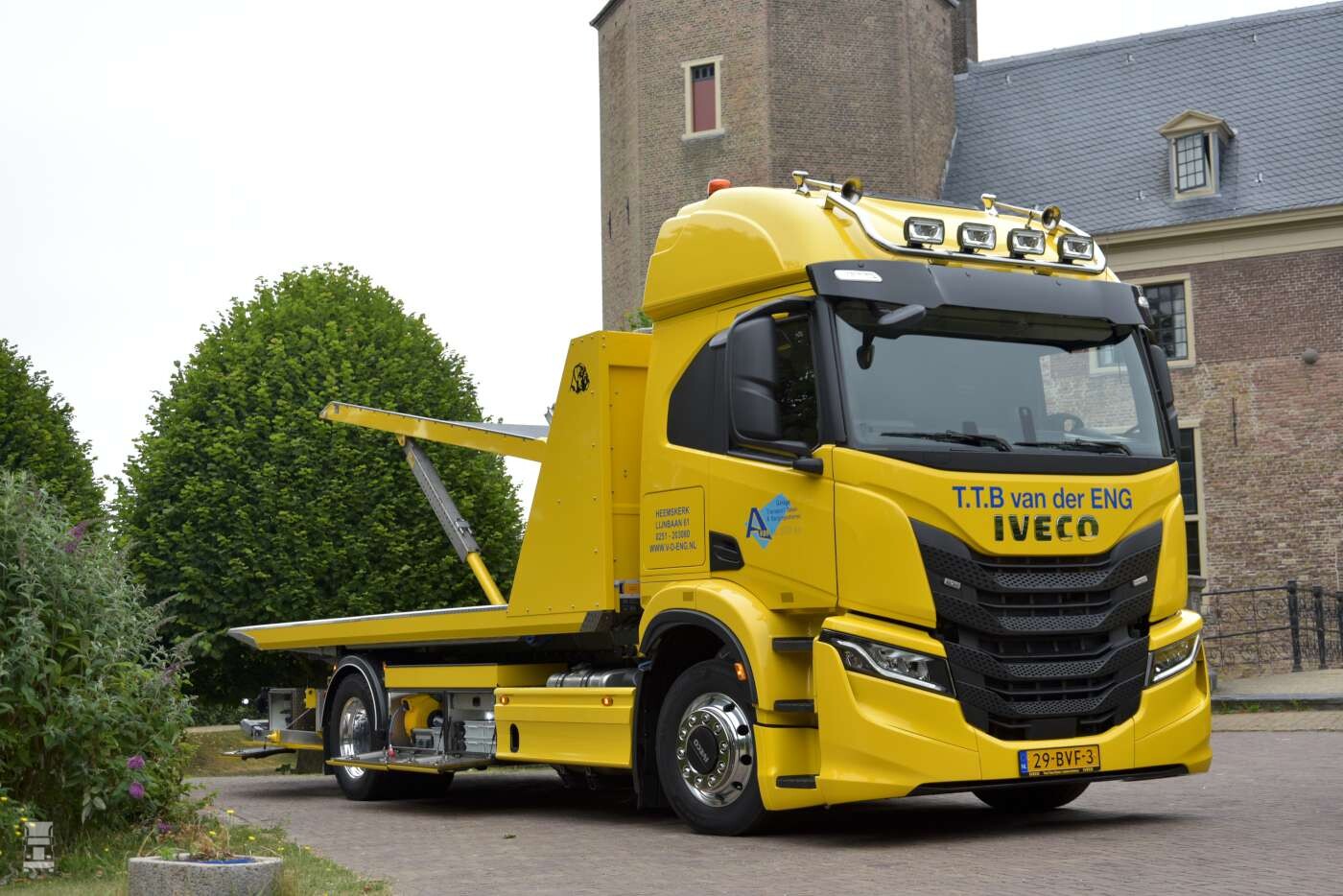 De Iveco S-Way is een zogenaamde drie-lader. Dat wil zeggen dat er twee auto’s meegenomen kunnen worden op de laadbak en één op de lepel achter de auto. Jeroen Zwart: "We hebben gekozen voor deze 19 tonner omdat auto’s steeds zwaarder worden. Een elektrische auto weegt zomaar tussen de 2- en 2,5 ton, en dan heb je met drie voertuigen wel wat laadvermogen nodig. Deze truck mag netto 6 ton laden en daarmee komen we prima uit".
