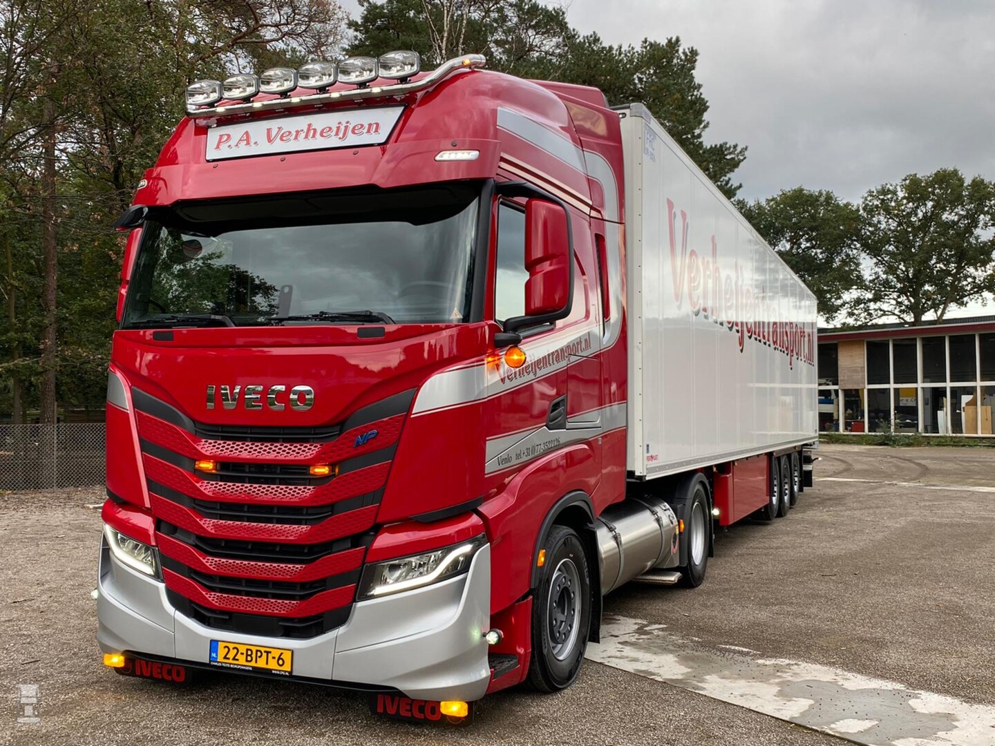 De nieuwe Iveco levert 460 pk en de truck is voorzien van de ruime slaapcabine met hoog dak. De truck is onder andere aangekleed met een lichtbak en een lampenbeugel met verstralers. Daarnaast zijn de bekende 'pablo's' aangebracht onder de spiegels en zijn er extra lampjes in de bumper geplaatst. Af fabriek werd de truck uitgerust met LED verlichting. Alles bij elkaar klopt het plaatje en is het een bijzonder fraaie nieuwe trekker geworden, zo in de huisstijl van Verheijen Transport.