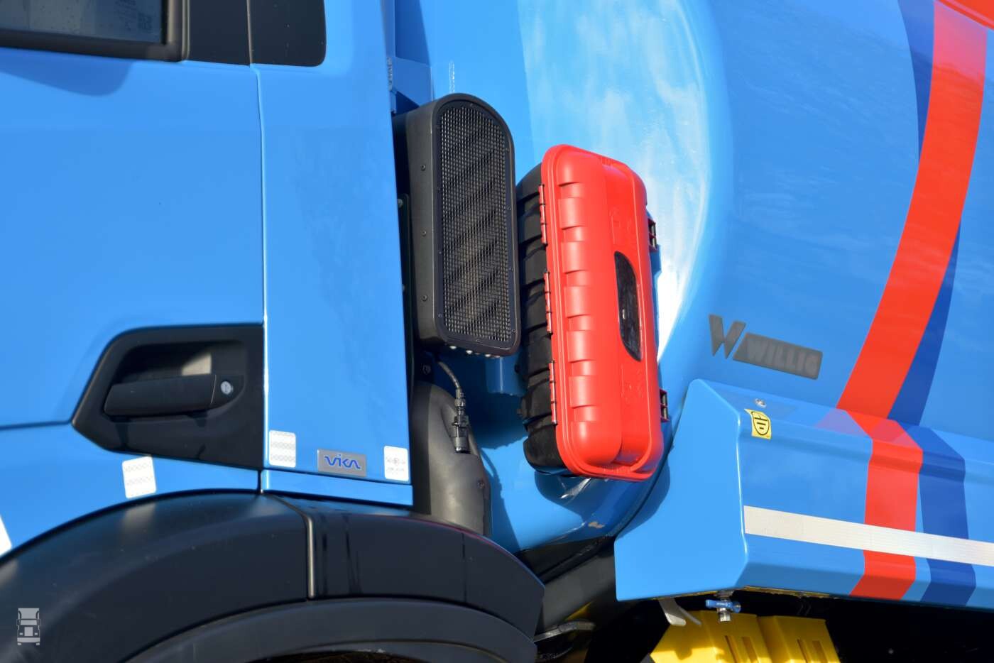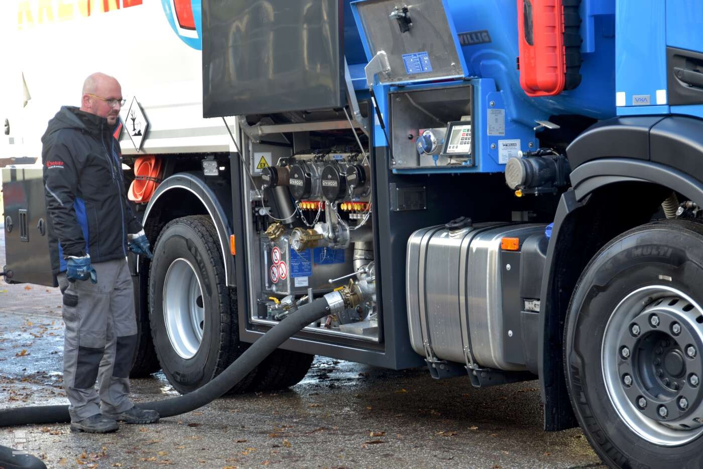 De tankopbouw van het Duitse Willig heeft 19 kubieke meter inhoud, plus 2 kuub voor AdBlue. "Met deze auto kunnen we zowel diesel als AdBlue leveren in één rit, wel zo efficiënt'', aldus Kreuze. Voor het lossen zijn er aan de achterzijde aan weerszijden haspels aangebracht in de tankopbouw. Verder heeft de truck ruimte aan boord voor 60 liter vaten en dozen smeerpatronen.