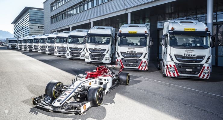 Het Alfa Romeo Formule 1 team zet dit seizoen 12 nieuwe Iveco Stralis trekkers en een Daily in voor de logistiek. Volgens het persbericht viel de keuze op Iveco vanwege de betrouwbaarheid van deze trucks en de lage totale kosten. Uiteraard speelt ook mee dat Iveco familie is van Alfa Romeo. Beide vallen immers onder het Italiaanse Fiat concern.