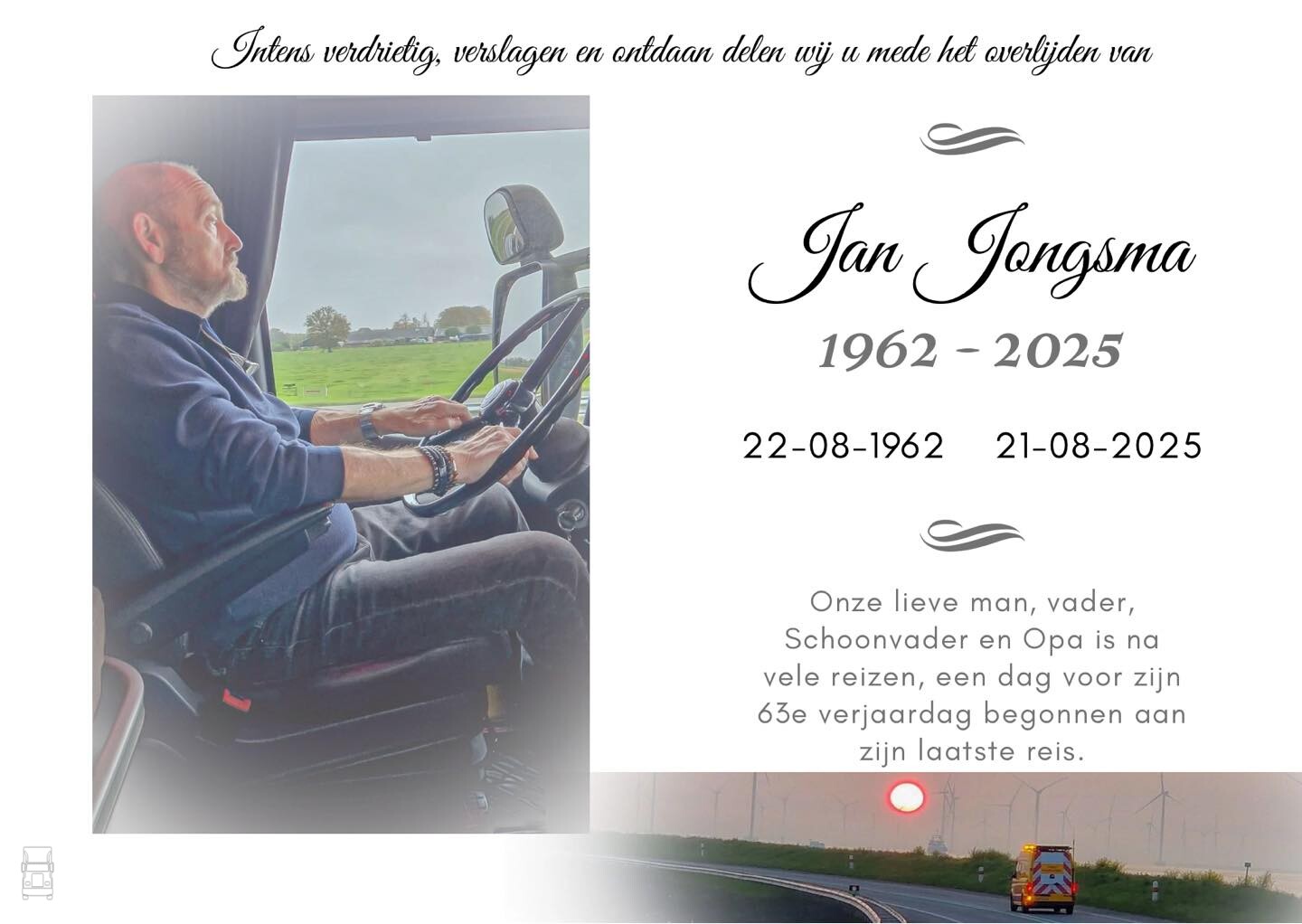 BIGtruck maakte meerdere reportages met Jan Jongsma en heeft mooie herinneringen aan Jan. Wij wensen de familie dan ook alle sterkte de komende tijd.