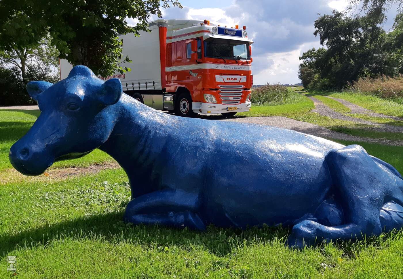De DAF XF is voorzien van een fraaie ‘Engelse’ zonneklep, een lichtbak en twee ronde verstralers op het dak. Een setje van vijf toplampen en twee luchthoorns maken het plaatje af. Onder de voorbumper is een spoiler gemonteerd met ‘Deense’ dagrijlampen en breedtepaaltjes. Het chassis is afgewerkt met fraaie RVS kisten en met een tot hoogglans opgepoetste aluminium brandstoftank.