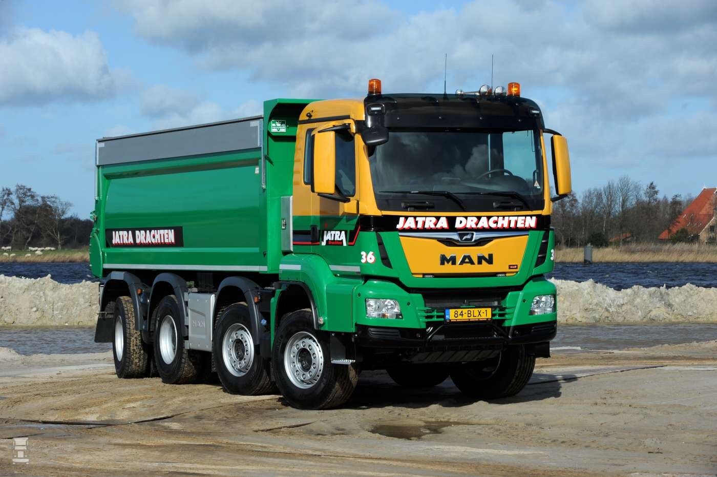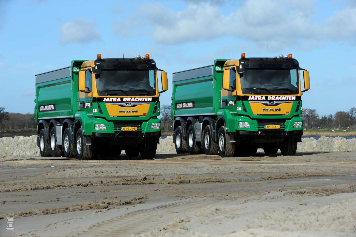 Transport en Handelsmij Jatra uit Drachten is gespecialiseerd in het leveren van materialen en diensten voor de bouw en wegenbouw. Met een eigen zanddepot en een loswal is de aan- en afvoer van materialen over de weg en met de binnenvaart mogelijk. Het familiebedrijf rijdt al decennia lang met MAN-trucks en dit merk is op dit moment zelfs sterker vertegenwoordigd dan ooit. Onlangs nam Jatra opnieuw twee MAN TGS 8x4 kippers in gebruik.