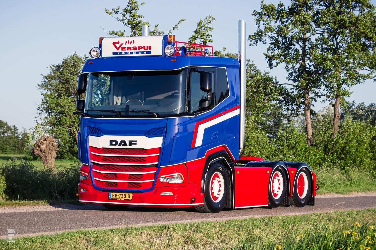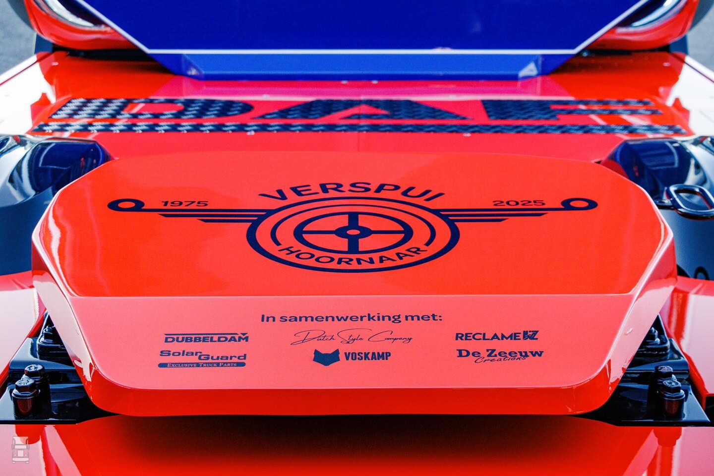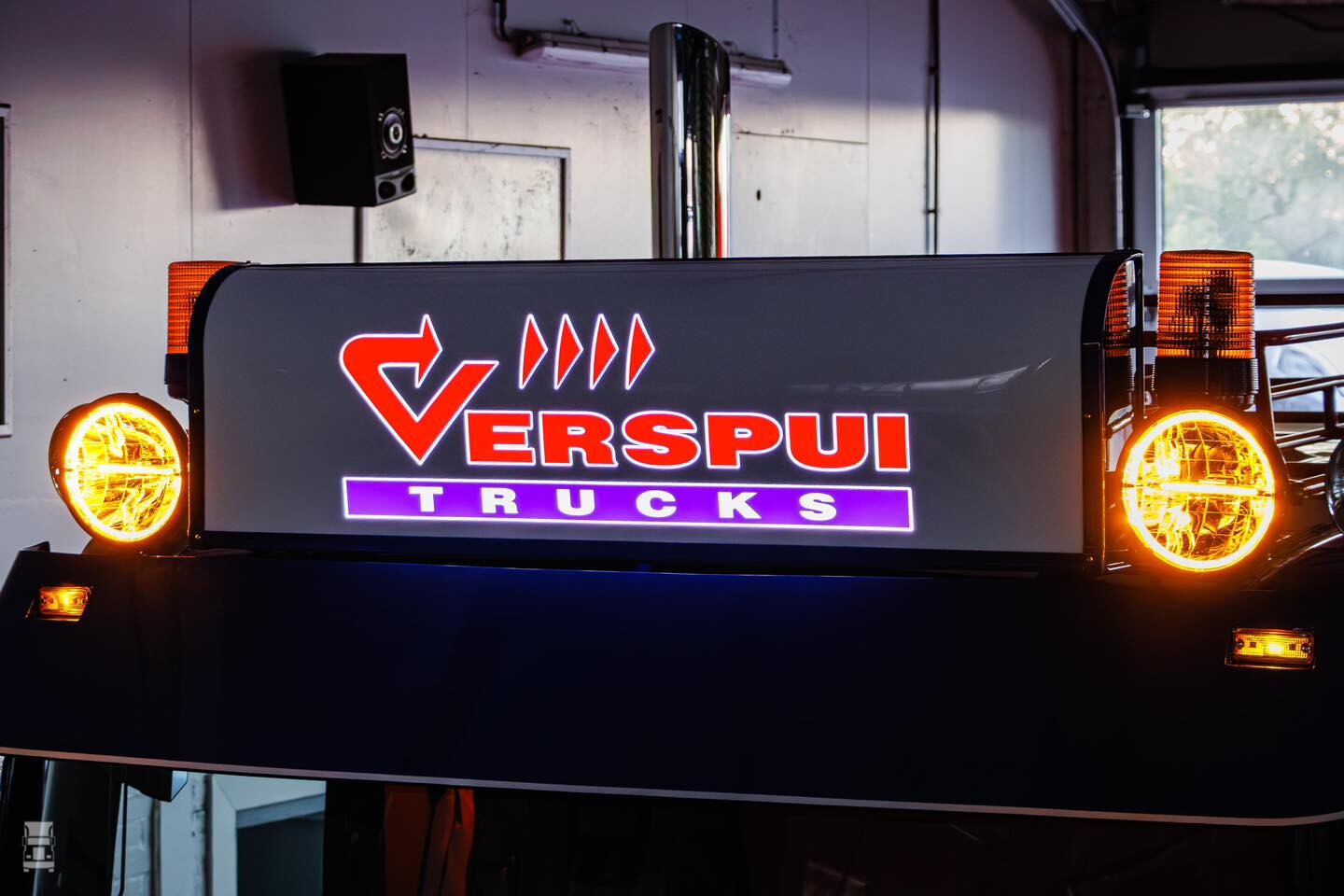 Op het ‘platte’ dak is een dakrekje aangebracht met een Deense lichtbak, verstralers en zwaailampen. Het resultaat is een moderne truck met de gewenste ‘Oldskool’ looks. Voor deze jubileumtruck werd samengewerkt met Dutchstyle-Company, Dubbeldam Groep, WZ Reclame, Voskamp Truckstyling en De Zeeuw Creations. De foto's werden voor Verspui Trucks gemaakt door Van der Hoek Truckfotografie.