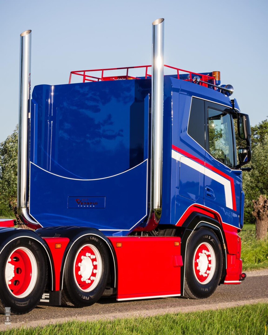 De trekker werd voorzien van fraaie accessoires van SolarGuard zoals windkapjes op de hoeken, een speciale zonneklep en een onderspoiler. Verder werd het chassis voorzien van zijskirts, een speciale achterbumper met klassieke achterlichten en staande uitlaten. Achter de cabine zien we een vlakke achterwand met een fraai slangenrek.