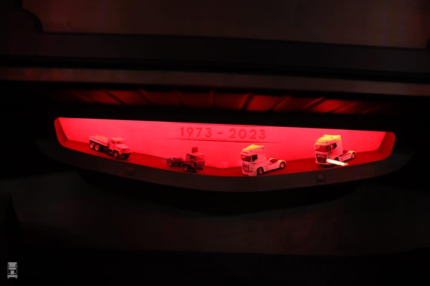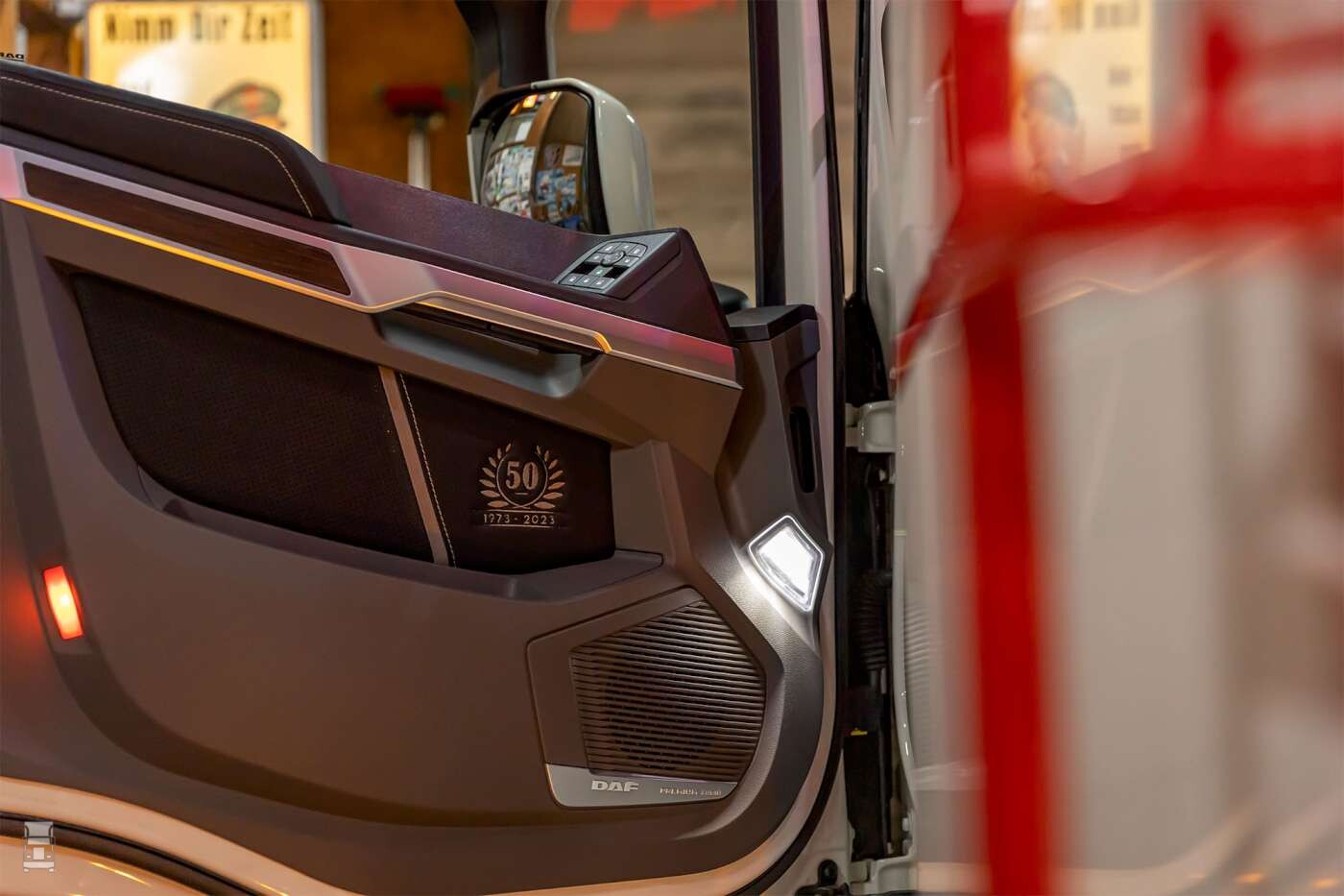 Op het dak vinden we verder een dakrekje, compleet met laddertjes aan beide kanten. Het chassis is, geheel in Deense stijl dichtgebouwd met kisten en een tranenplaat afdekking. Ook het interieur is geheel in stijl afgewerkt, met als hoogtepunt een ingebouwde vitrine in de achterwand met daarin een aantal modellen uit de DAF historie. Alles bij elkaar een hele opvallende nieuwe DAF dus. BIGtruck feliciteert Lewiszong met het jubileum!
