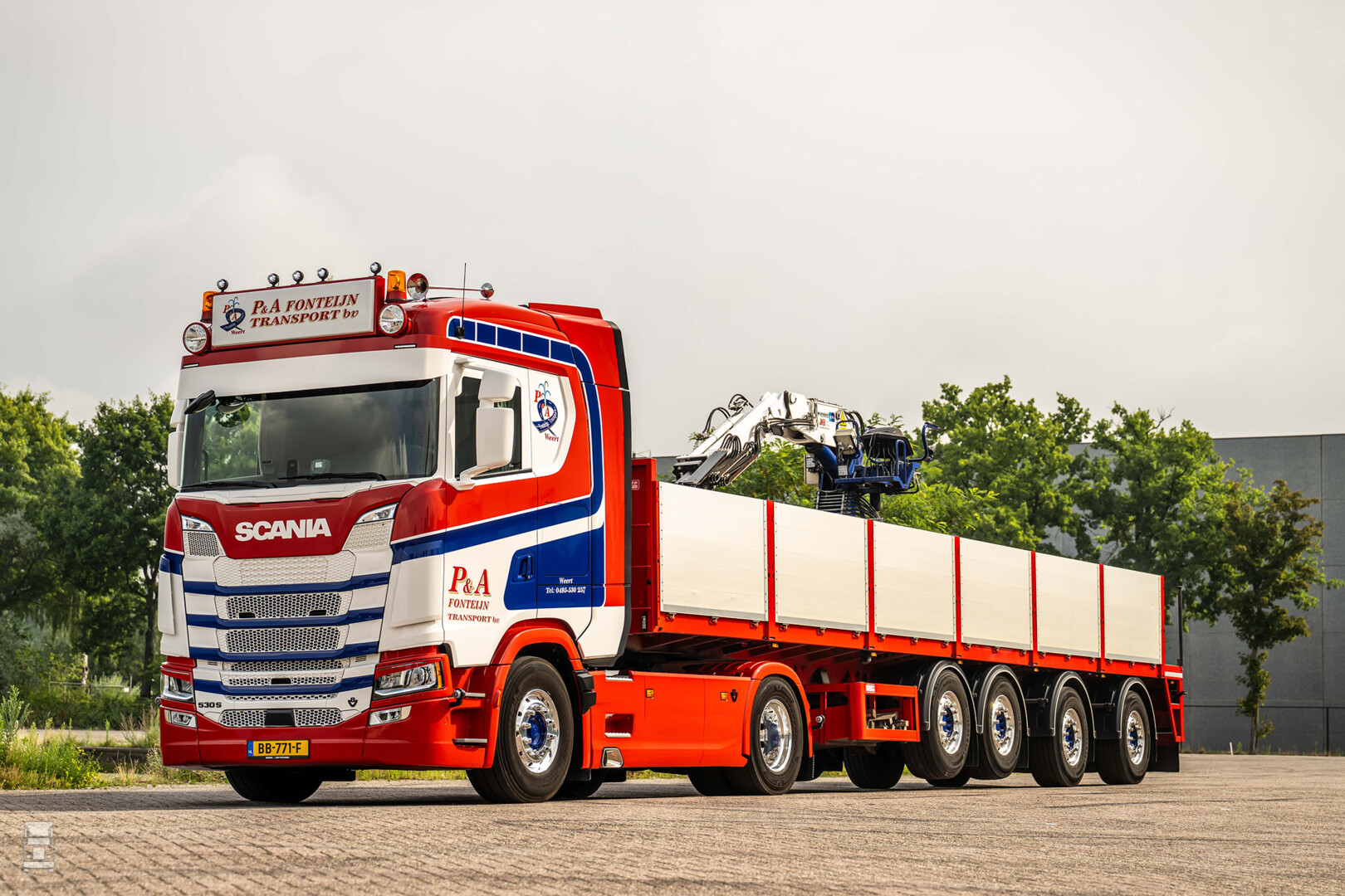 De broers Patrick en André Fonteijn groeiden op tussen de trucks. In 2000 schaften ze twee Scania trucks aan en begonnen ze hun eigen transportbedrijf, dat sinds 2005 P&A Fonteijn Transport B.V. heet. Wat begon met ferrytransport groeide uit tot een samenwerking met een lokaal bedrijf in sierbestrating. Sindsdien rijden ze dagelijks met betonklinkers en bestratingsmateriaal door heel Nederland en een stukje van Duitsland en België. Het wagenpark is inmiddels uitgegroeid tot vijf trucks, allemaal met dezelfde herkenbare, verzorgde uitstraling.