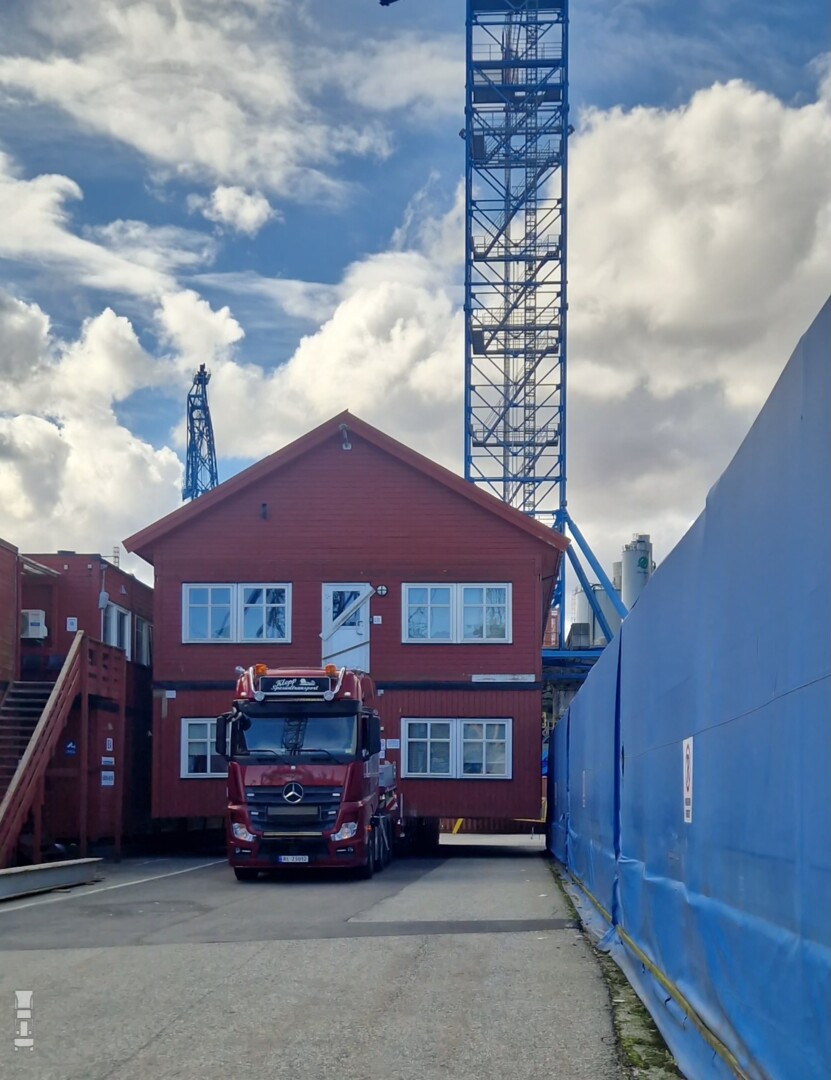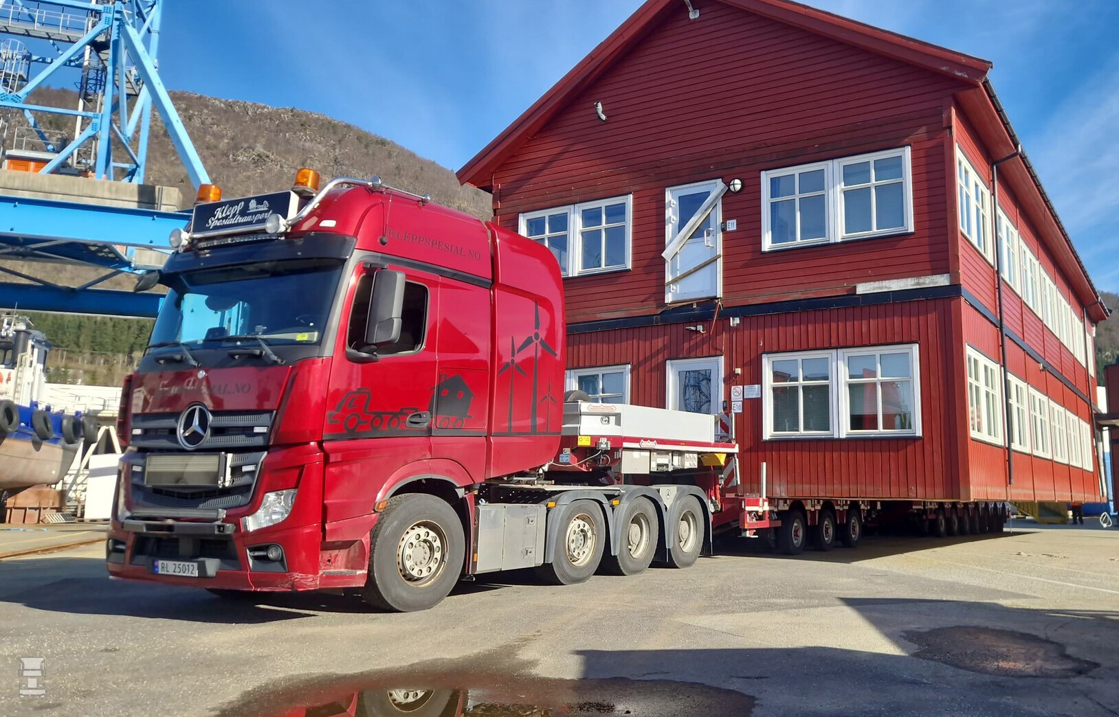 Het houten gebouw heeft vanaf 1998 dienst gedaan als kantoor voor de rigging- en ofshore afdeling van het bedrijf. Na de verplaatsing zal het dienst doen als projectkantoor in Florรธ. Het was een heel spektakel, waarbij het pand los van de fundering gehaald werd om op de Nooteboom oplegger geplaatst te worden. Vervolgens werd het gebouw op een ponton langs de kust vervoerd om daarna door de mannen van Klepp op de juiste plek geplaatst te worden. Voor dit transport werd een Nooteboom MPL-150-37-VV Manoovr semi- dieplader ingezet.