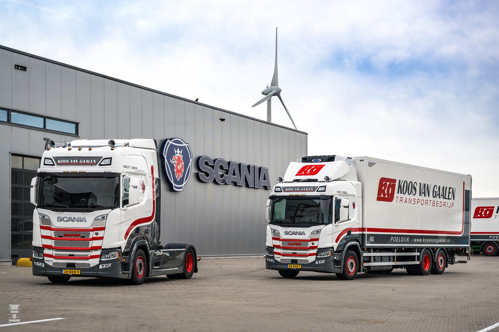Transportbedrijf Koos van Gaalen uit Poeldijk is gespecialiseerd in geconditioneerd AGF-transport. Het bedrijf is actief in de gehele keten, vanaf de kweker met dagverse groenten en fruit tot aan de distributie naar de supermarkt. ,,Al sinds de oprichting van ons bedrijf maakt Scania deel uit van de vloot. Sterker nog, onze eerste truck in 1994 was ook een Scania’’ aldus directeur Arco van Gaalen. Sinds de oprichting groeide het bedrijf door tot een onderneming met inmiddels 52 trucks, waarvan op dit moment bijna de helft uit Scania’s bestaat.