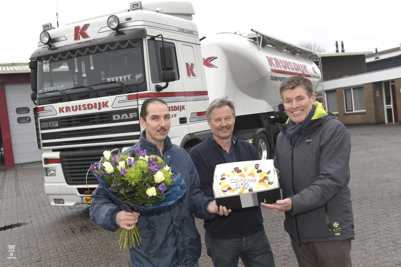 Chauffeur Benny Jansen (al bijna 24 jaar werkzaam bij het transportbedrijf) koestert de DAF. Vanaf de datum van aflevering, 6 maart 2000, is Benny de vaste chauffeur op deze auto. En ook de enige die dus de 2 miljoen kilometer heeft afgelegd. ‘Een correcte, defensieve rijstijl helpt voor de levensduur. Als je de motor, de versnellingsbak en de aandrijflijn uit elkaar zou halen, dan denk ik dat alles er bijna nog als nieuw uitziet. Zo goed en strak voelt de XF nog tijdens het rijden.’