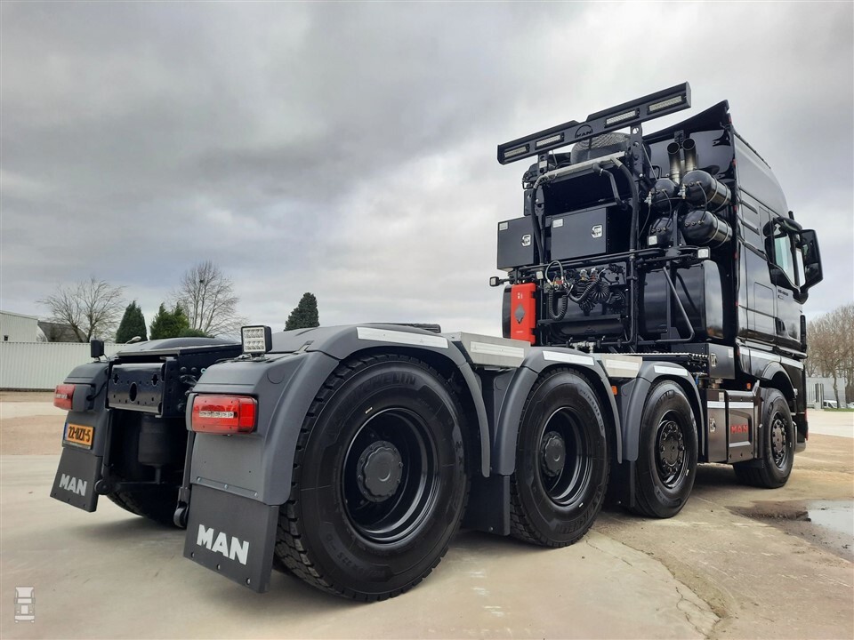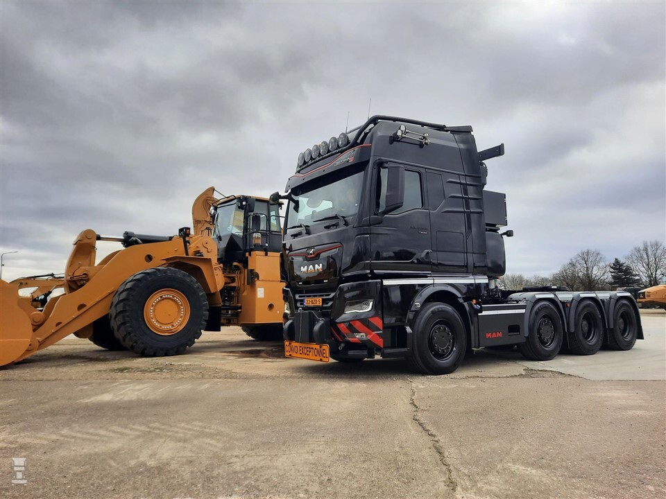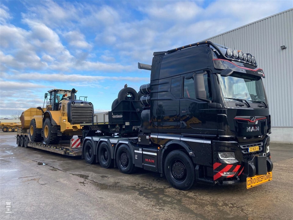 Nu is het tijd voor een nieuwe versie hiervan. De nieuwe MAN TGX ziet er al net zo indrukwekkend uit. Met vier assen en een indrukwekkende opbouw achter de cabine maakt deze MAN duidelijk dat hij bedoeld is voor het zware werk. De trekker heeft dan ook een GCW tot 250 ton. Dealer Den Engelsen beschrijft de MAN zwaartransporttrekker van Ligro als ‘zowel de beauty als the beast’ en die omschrijving past prima bij dit zwarte gevaarte.