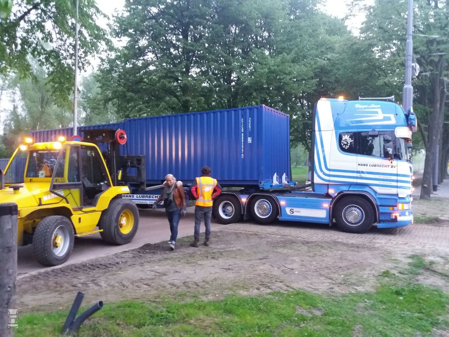 Het had gisteren een kampioensfeest kunnen zijn in Rotterdam, helaas voor sommige werd het resultaat geen feestje maar een door ME-ers schoongeveegde binnenstad. Diverse agenten voerden charges uit op rellende supporters die met stenen naar de politie gooiden en leuzen riepen. Om er voor te zorgen dat er bij het stadion van Excelsior ongeregelheden niet uit de hand zouden lopen werd er om het stadion heen een ring gebouwd van zo`n 70 zeecontainers. Deze moesten er voor zorgen dat de toegang naar het stadion voor de supporters die kaarten voor deze wedstrijd hadden bemachtigd in goede harmonie bij het stadion konden komen. Vrijdag en zaterdag werd er begonnen aan deze logistieke operatie in Rotterdam. Tamara Verschoor (Ruud Verschoor `s lands slimste afzetter)uit Hellevoetsluis kreeg de opdracht en zorgden er samen met Stefan Elgers (Stefan Elgers Transportservice)en een aantal collega transporteurs voor dat deze ring van containers gebouwd maar ook vandaag weer werd weggehaald. Een hele klus die jammer genoeg zoals we gisteren weer gezien hebben toch nodig is.