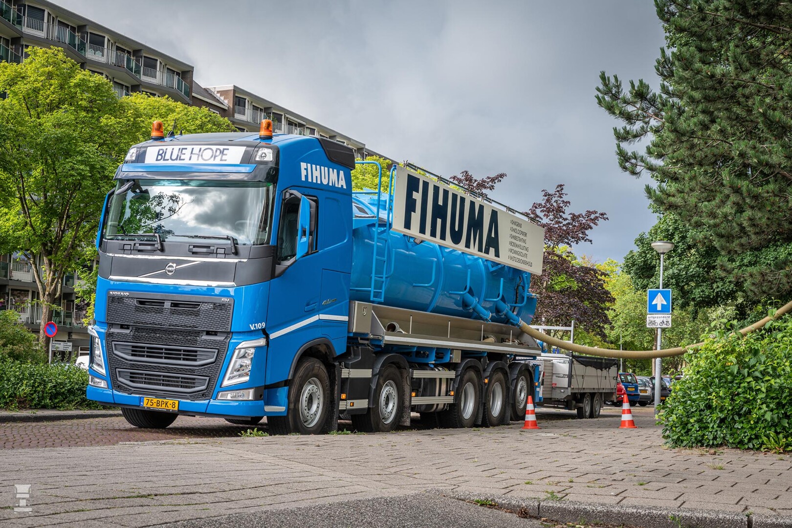De Rotterdamse Fihuma Groep heeft een Volvo FH 460 10x4 in gebruik genomen met een zuig/blaas installatie als opbouw. De af-fabriek geleverde Volvo 10x4 is rondom luchtgeveerd en is voorzien van twee tien tons voorassen.