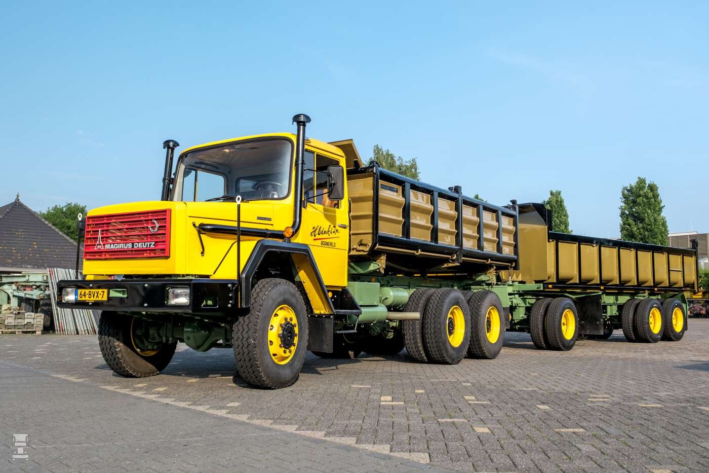 Bij Vink wordt de Magirus Deutz historie gekoesterd met de fraai gerestaureerde combinatie. De 256D 26 is voorzien van een luchtgekoelde V8 motor met 256 pk. De prachtig gerestaureerde 'Eckhauber der dritte generation' is van een model dat sinds 1971 geproduceerd werd. In 1974 ontving Magirus Deutz een mega order van maar liefst 9500 trucks van dit type voor een groot project in Siberië. Dankzij de luchtgekoelde motor waren deze trucks onverwoestbaar in de barre kou.
