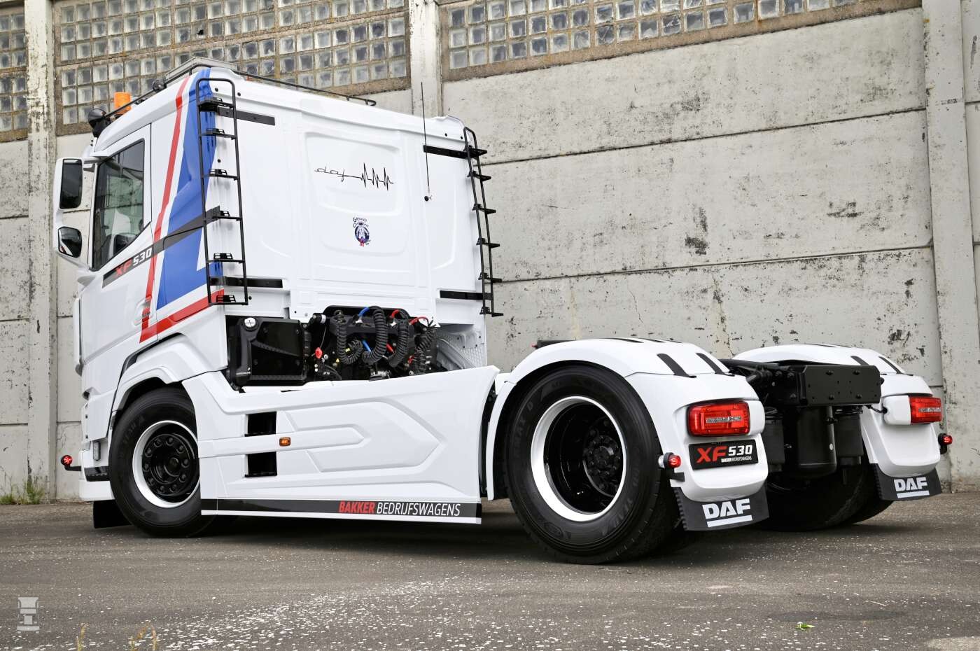 Bakker Bedrijfswagens levert niets minder dan het beste. Dus ook ditmaal is de truck full options uitgevoerd. Denk daarbij o.a. aan lucht geveerde cabine-ophanging met geïntegreerde schokdempers, dubbellaags veiligheidsglas, DAF-hoekzicht camerasysteem, chauffeur- en bijrijdersstoel met luchtvering – Xtra Leather Air, luxe LED-interieurverlichting in de cabine, cabineklimaatregelaar, Predictive Cruise Control, DAF Infotainment System – Luxury Plus incl. extra touchscreen & subwoofers, gordelspanners, bandenspanningsbewaking en nog veel meer! Aan niets ontbreekt het bij deze stoere krachtpatser. Uiteraard is dit idee voor deze truck geboren vanuit Bakker Bedrijfswagens, maar mede dankzij onderstaande partners is dit project meer dan geslaagd! Speciale dank gaat dan ook uit naar Truckstyling Beemte, Verbeek Reclame, EDM Design, Solar Guard, Erik Kroos, Rolink's Car Detailing en Spleen Vision.