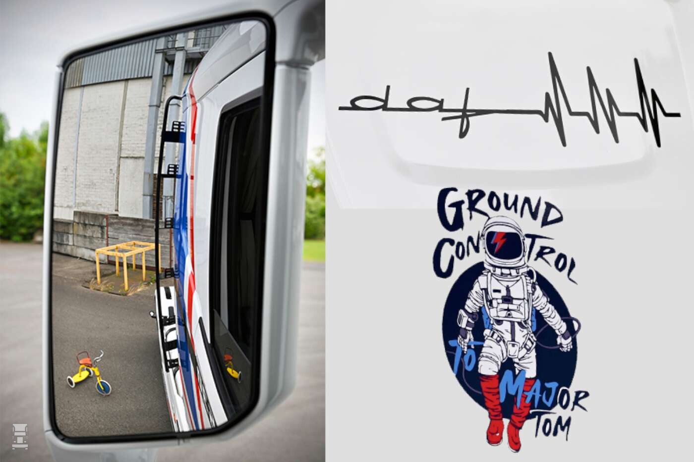 Major Tom is een fictieve astronaut in het verhaal van David Bowie van zijn album Space Oddity, eind jaren 60. De kleuren en sfeer hiervan sluiten naadloos aan bij de nieuwe Oldskool truck verwijzend naar de retro DAF ATI.