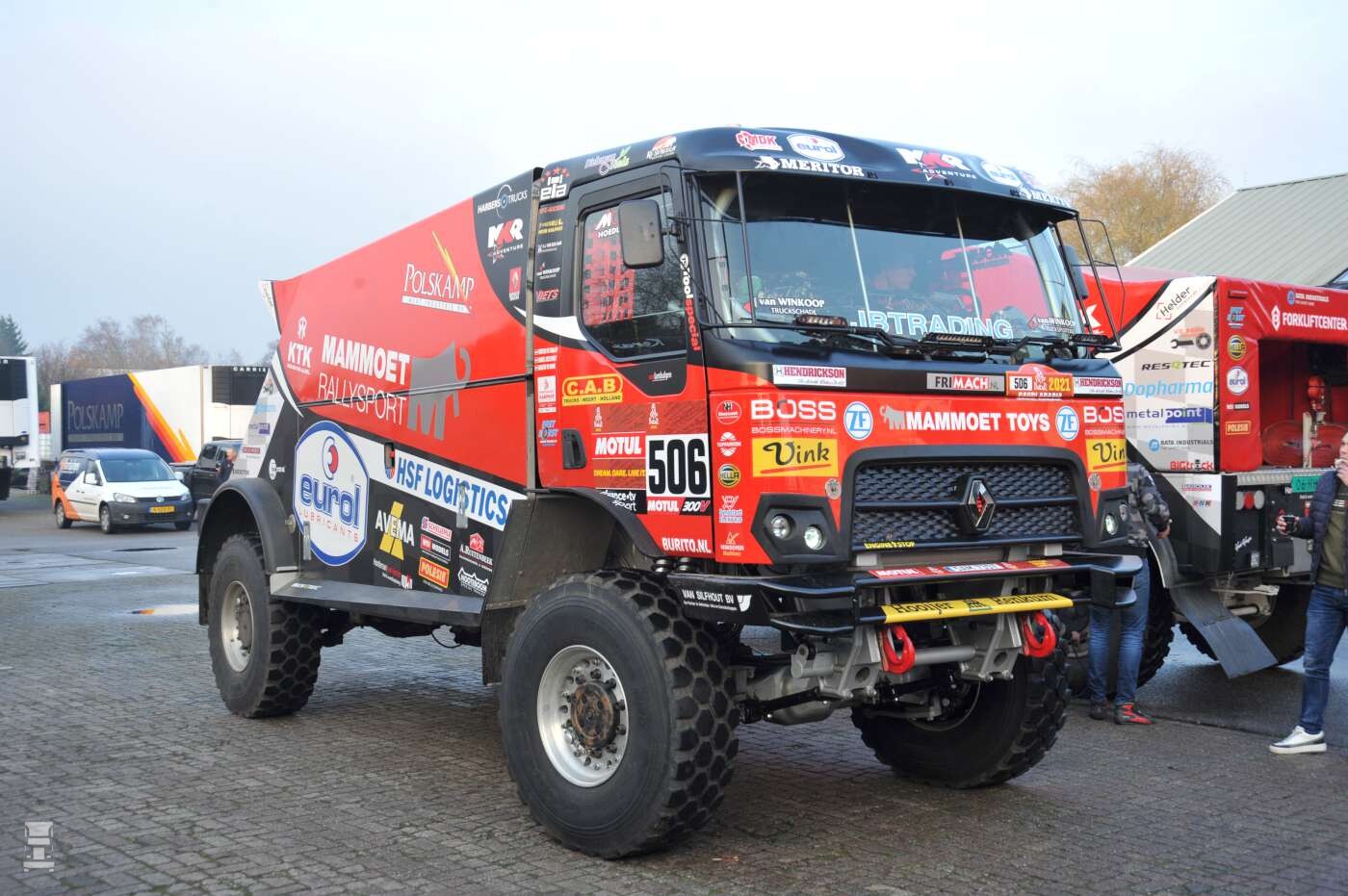 De rallytrucks van Mammoet Rallysport staan er puntgaaf bij en dat is niet zo vreemd. De Volvo FMX waarmee Mitchel gaat rijden werd volledig nieuw opgebouwd op basis van bestaande componenten, terwijl de Renault 4x4 rallytruck van Martin compleet nieuw is. Het is een zelfde model als waar het Riwald team mee rijdt, maar dan zonder het hybride systeem. Martin zal met weemoed terug denken aan de stoere Sherpa met zijn dikke neus maar met de nieuwe, veel lichtere Renault denkt hij wel veel sneller te zijn. De truck is compacter, heeft een lager zwaartepunt en is op alle fronten een verbeterde versie van zijn voorganger. Martin rijdt met monteur Daniël Kozlovsky en navigator Wouter van der Graaff in de nieuwe Renault rallytruck.