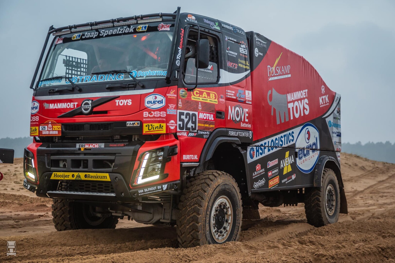 Mammoet Rallysport is klaar voor Dakar. Het team vertrekt vandaag met twee trucks richting de boot die ze naar de grote zandbak in Saoudi Arabië brengt. Martin van den Brink rijdt dit jaar met een beduidend lichter type Renault rallytruck terwijl zijn zoon Mitchel voor de snelle assistentie zorgt in een Volvo FMX.