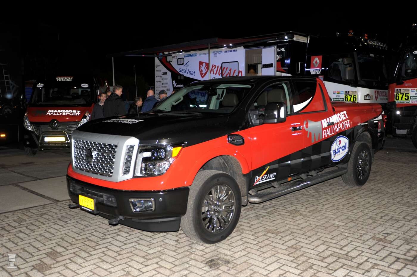 Naast de nieuwe Renault Sherpa was ook de nieuwe persauto van Mammoet Rallysport te bewonderen. Een hele stoere Nissan Titan met een Cummins dieselmotor moet er voor zorgen dat we scherpe foto's te zien krijgen van de mannen in actie.