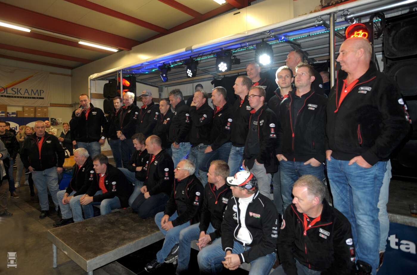 Tijdens de perspresentatie was het gezellig druk in de werkplaats in Harskamp. Alle sponsors waren vertegenwoordigd en Martin wist de handjes meerdere malen stevig op elkaar te krijgen. Het is een knap staaltje werk dat het team er klaar voor is na alle tegenslag en dat kon alleen maar dankzij de enorme fanbase en de steun van alle sponsors. Eén ding is dan ook duidelijk, iedereen gunt het de mannen om dit jaar een gat te slaan in de blauwe en groene overmacht in het truck klassement. Het is aan Martin, Pascal en Gert Huzink van Riwald om daar wat aan te doen dit jaar!