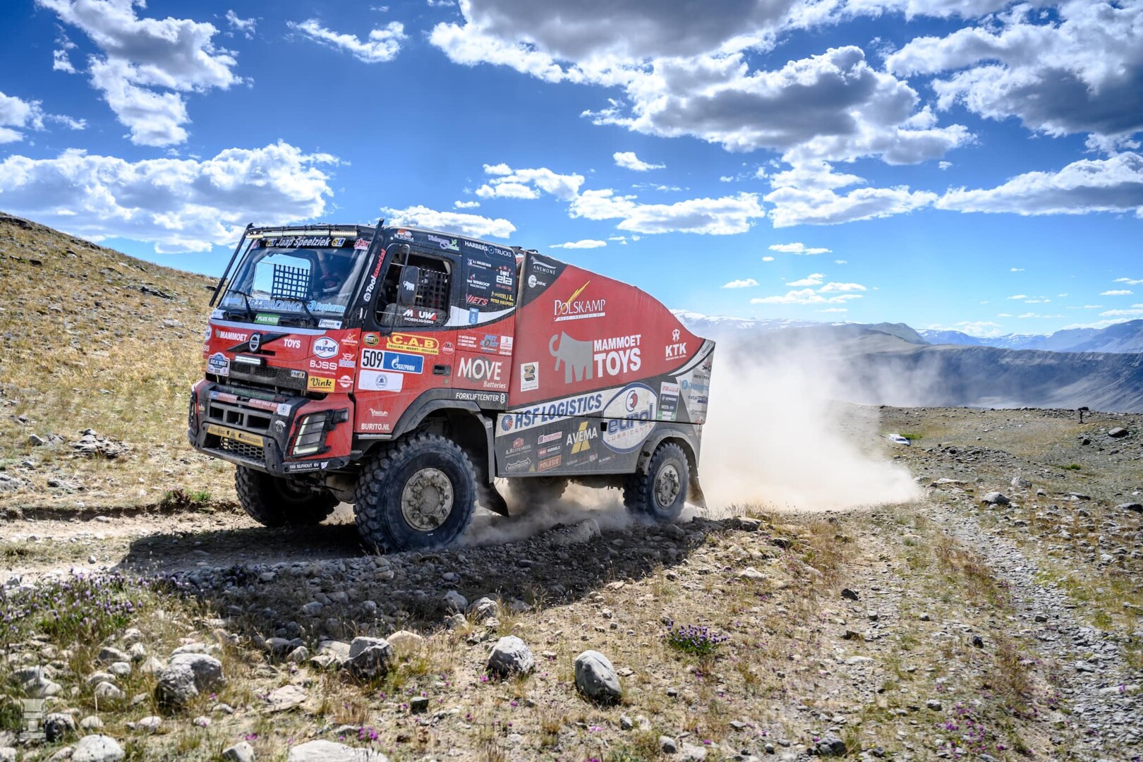 Intussen rijdt Mitchel van den Brink een bekeken rally met zijn Volvo FMX rallytruck. Na een dag vol hulpverlenende activiteiten waarbij de stoere Volvo 4x4 zelfs Kamaz trucks uit de zompige bodem wist los te trekken kenden Mitchel van den Brink, Richard Mouw en Erwin van Voskuilen vandaag een relatief rustige dag. De jonge Harskamper stuurde de Volvo zonder problemen over de special en eindigde vandaag als twaalfde. ,,We hebben helemaal niets meegemaakt vandaag,’’ zo vertelde navigator Richard Mouw na afloop. Mitchel heeft nog één etappe voor de boeg om te voldoen aan de doelstelling. ,,We willen de finish halen, assistentie verlenen waar mogelijk is en vooral veel leren,’’ zo verklaarde Mitchel van den Brink al voor de start in Siberië.