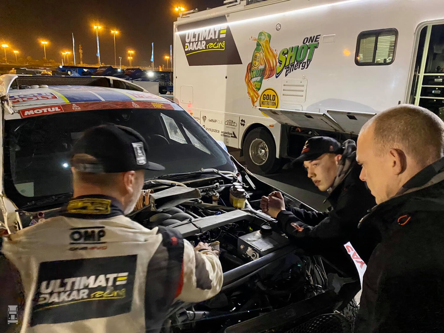 Na het race ongeluk waarbij Martin gisteren een aanrijding kreeg met een Ford 4x4 van Ultimate Dakar Racing is het stof neergedaald. Martin zocht met zijn team de onfortuinlijke Tomas Ourednicek op in het bivak om zijn hulp aan te bieden.