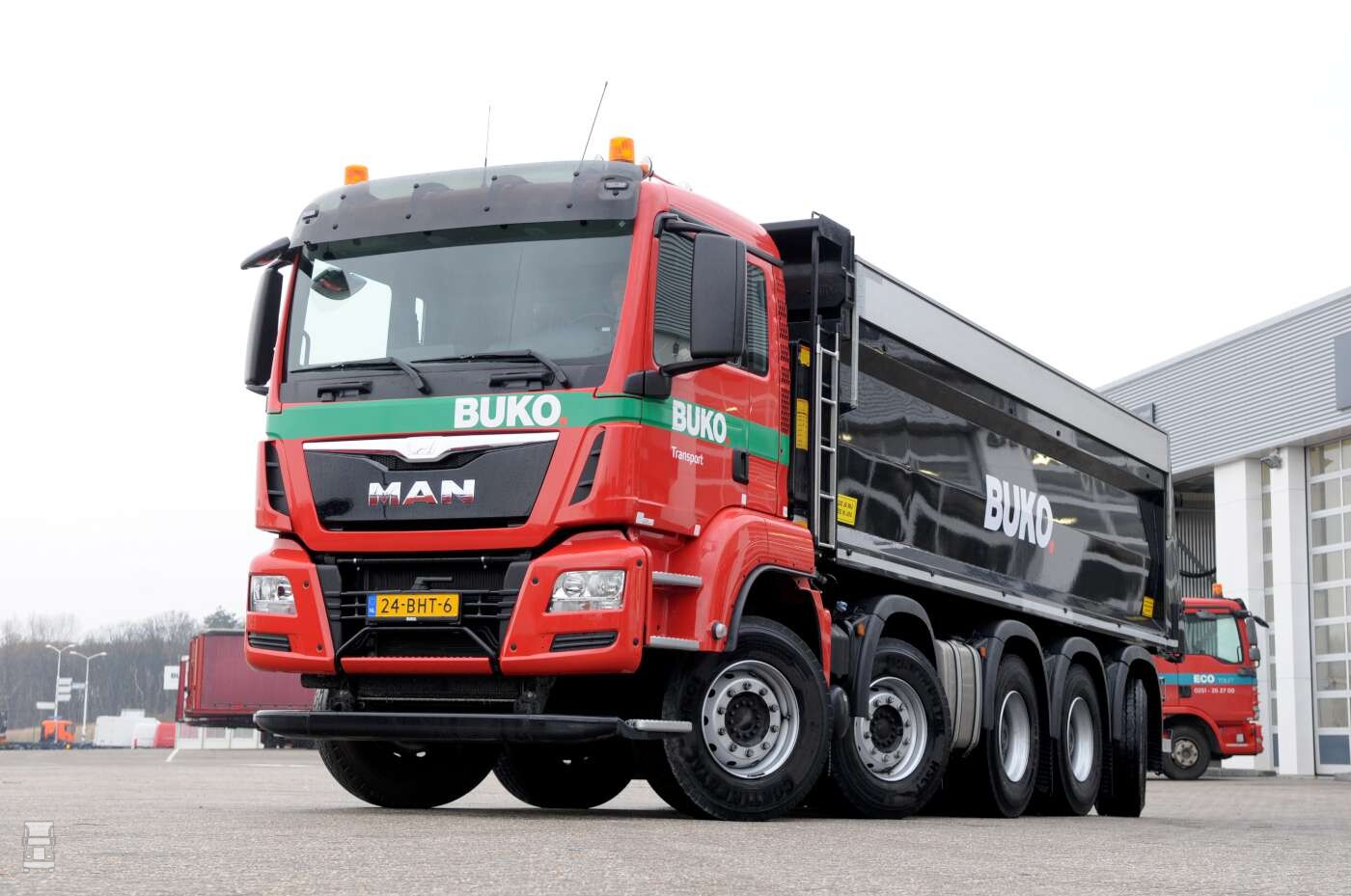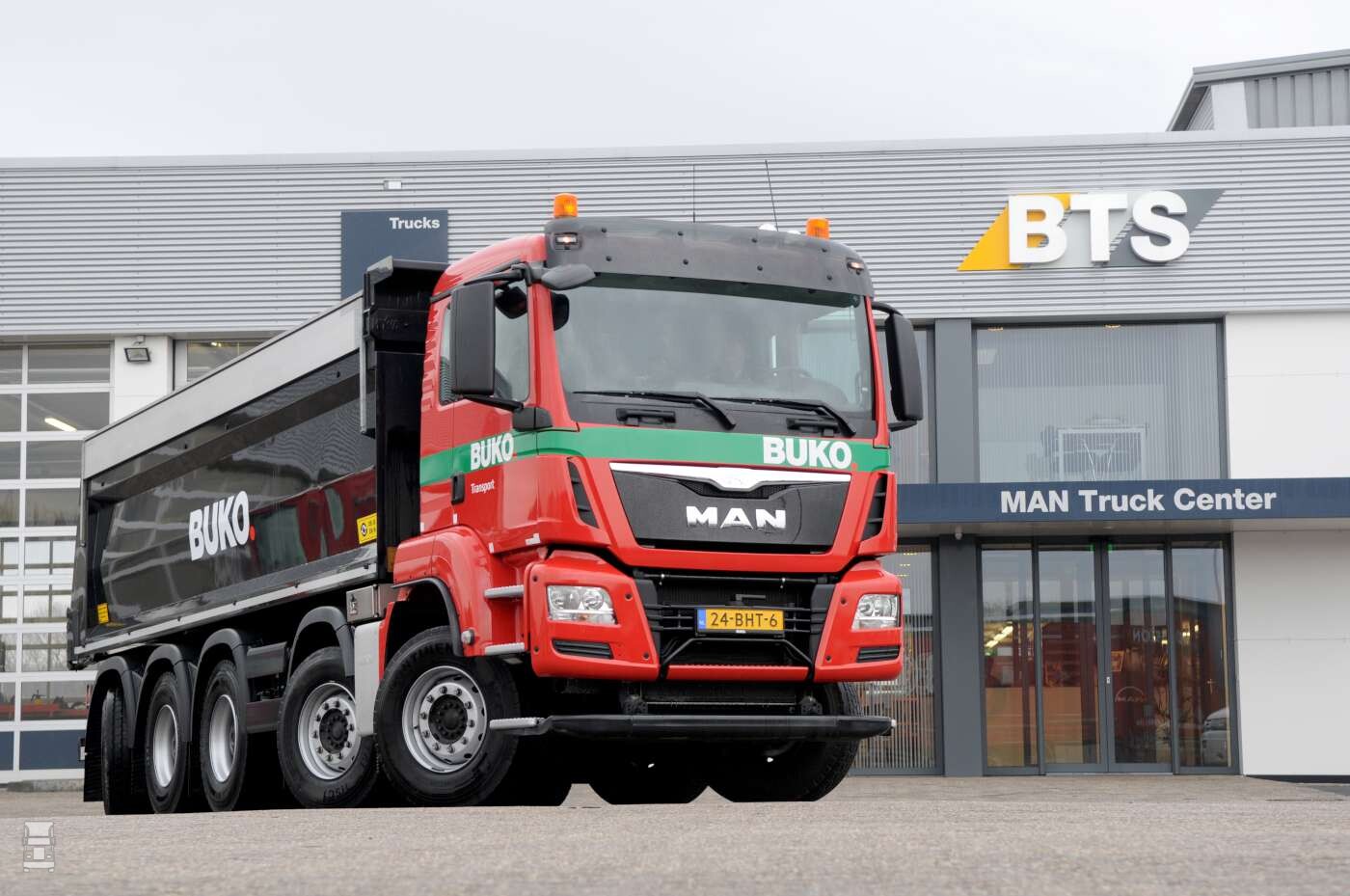 Het nieuwe concept van de vijf-asser met als laatste as een sturende sleepas is het gevolg van een nauwe samenwerking tussen BUKO, MAN Trucks Nederland, BTS Truck dealer en Wierda Voertuigtechniek. Langen-dijk: ,,Om onze klanten goed van dienst te kunnen zijn is het noodzakelijk dat we een beroep kunnen doen op de flexibele inzet van een hoogwaardig en modern wagenpark. Standaardisatie van ons wagenpark helpt ons slag-vaardig te kunnen blijven handelen. In samenwerking met MAN zochten wij dan ook naar een nieuw standaard concept.. Door zowel MAN Truck & Bus als MAN Truck dealer BTS is er actief meegewerkt aan deze nieuwe oplos-sing. Het resultaat is voor ons de ideale kipper om onze klanten in de grond-, weg-, en waterbouw goed van dienst te zijn. Met een hoog laadvermogen en grote wendbaarheid kunnen wij ze op bijna iedere locatie perfect van dienst zijn. Voor zwaar terreinwerk is deze kipper niet geschikt, daarvoor zetten we onze 8x8 en 10x8 trucks in’’.