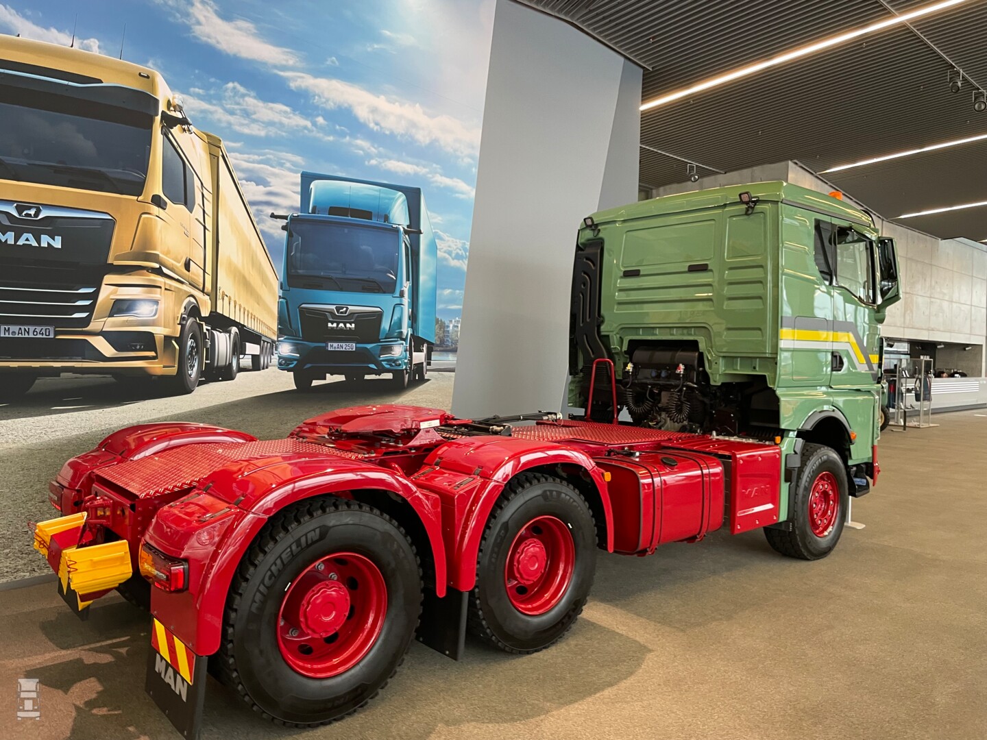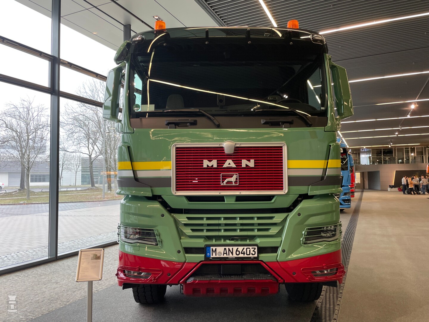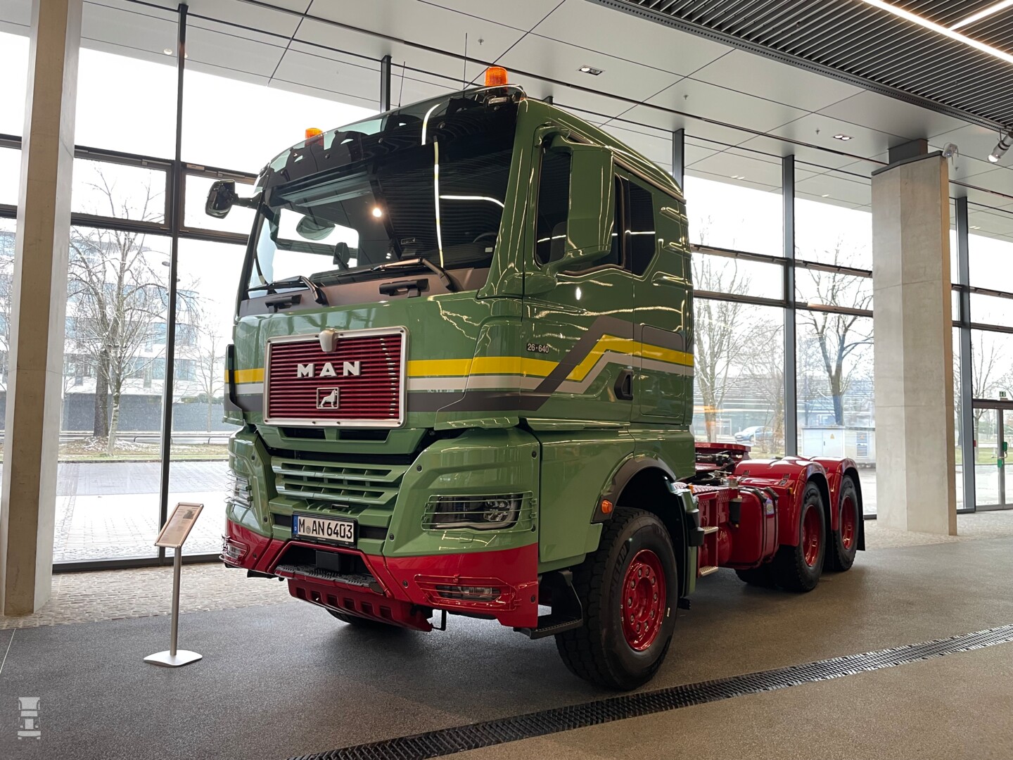 Toen we vorige week bij MAN in München op bezoek waren troffen we deze unieke retro truck aan in het Forum. De stoere 6x4 is voorzien van de grille van een F8 model, en ook in het interieur is het retro thema doorgevoerd.