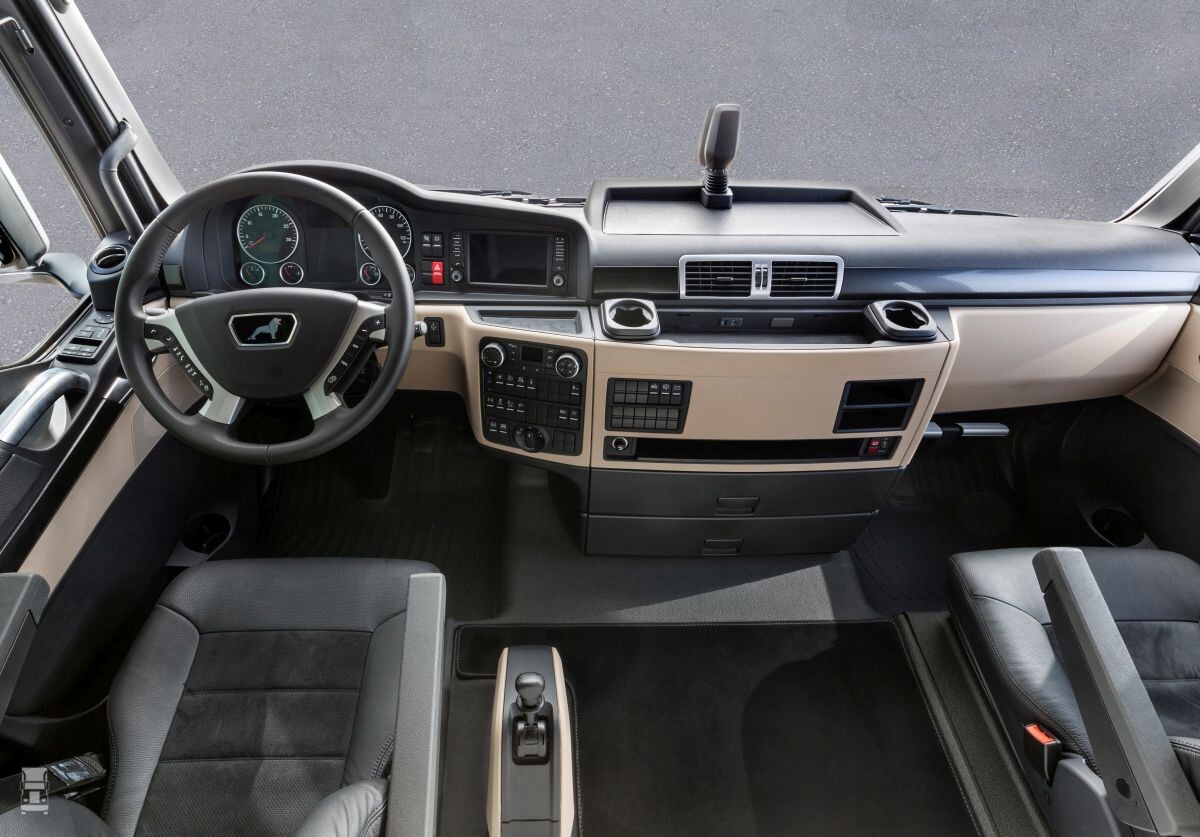 MAN komt met enkele vernieuwingen voor 2018. Meest opvallend zijn een EGR-vrije zeven liter motor, vernieuwde interieurs en telematicasysteem RIO standaard in elke MAN truck. Van dat nieuwe interieur hier alvast een foto.