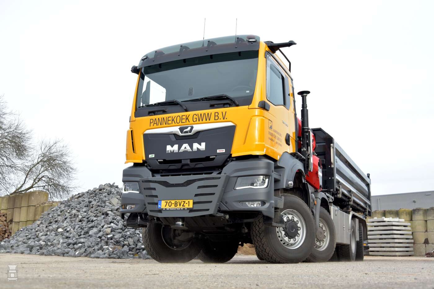 Pannekoek Grond- Weg en Waterbouw is een veelzijdig bedrijf dat zich ook bezighoudt met waterzuiveringsinstallaties, werktuigbouw, betonwerk en infra. Daarvoor beschikt het bedrijf over twee zware trucks, waaronder de nieuwe MAN TGS. Een stoere 8x8 WS die dankzij de opbouw bijzonder veelzijdig inzetbaar is.
