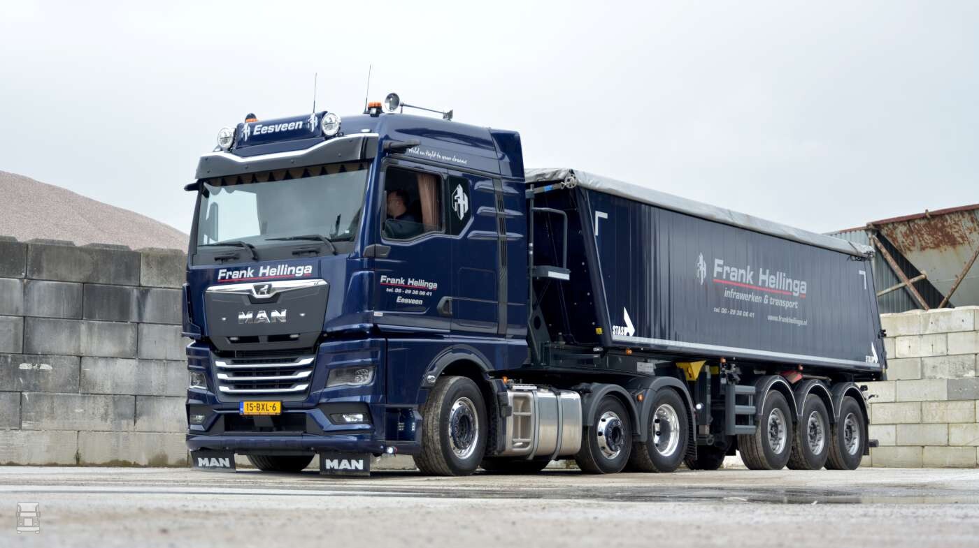 Frank Hellinga houdt zich bezig met grondverzet, de handel in zand- en grind en transport. Daarvoor zet het bedrijf een vloot in van tien trucks. De nieuwe MAN betreft een uitbreiding van het wagenpark en is de derde MAN in de vloot.