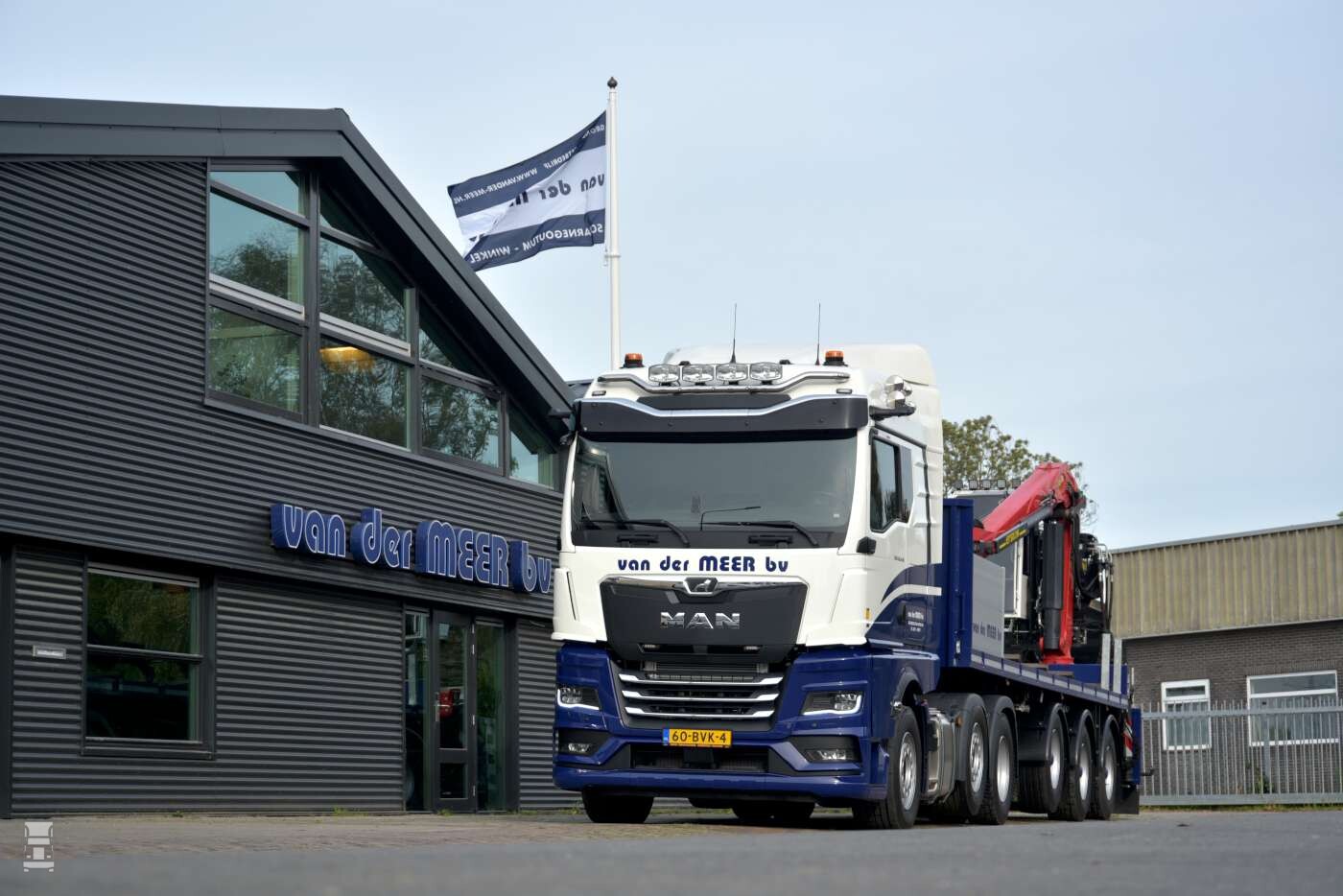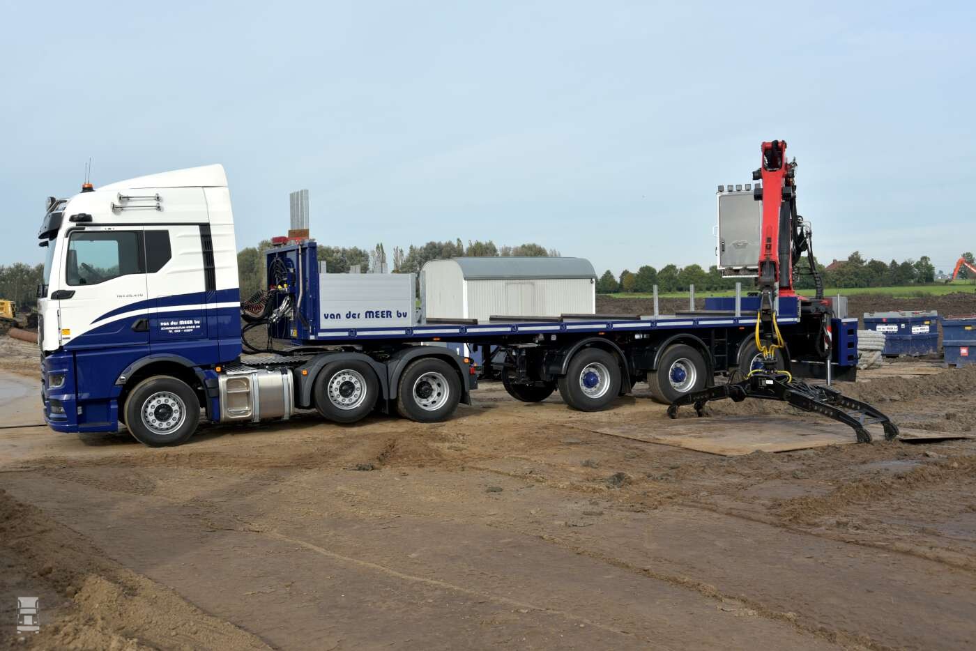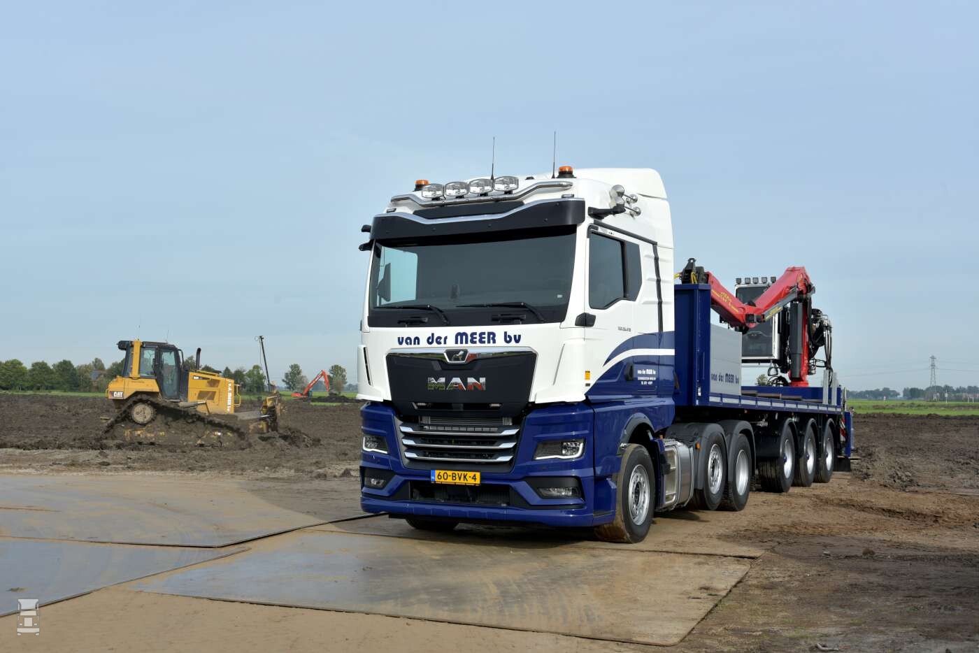 De nieuwste aanwinst is speciaal voor het transport en het leggen van rijplaten. Om die reden is de truck vanaf de kraan bestuurbaar, door middel van een systeem van Hy-Drive. Daardoor kan de chauffeur op de kraan blijven zitten, terwijl de truck langzaam voor- of achteruit rijdt tijdens het leggen van een platenbaan. Gelijktijdig met de nieuwe MAN werd ook een nieuwe Draco oplegger besteld met stuurassen en een zware kraan.