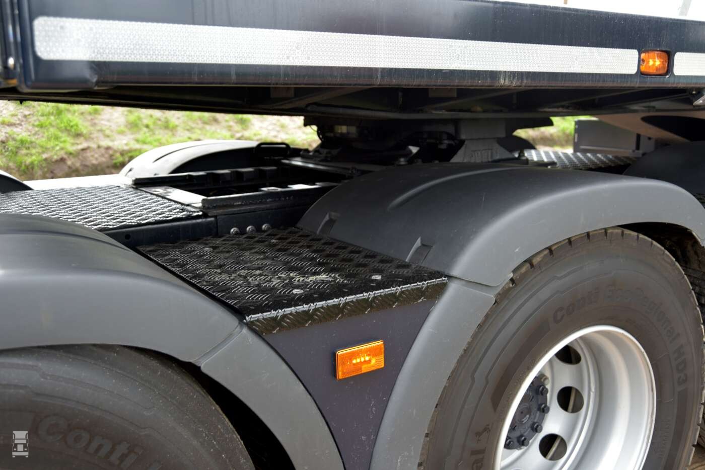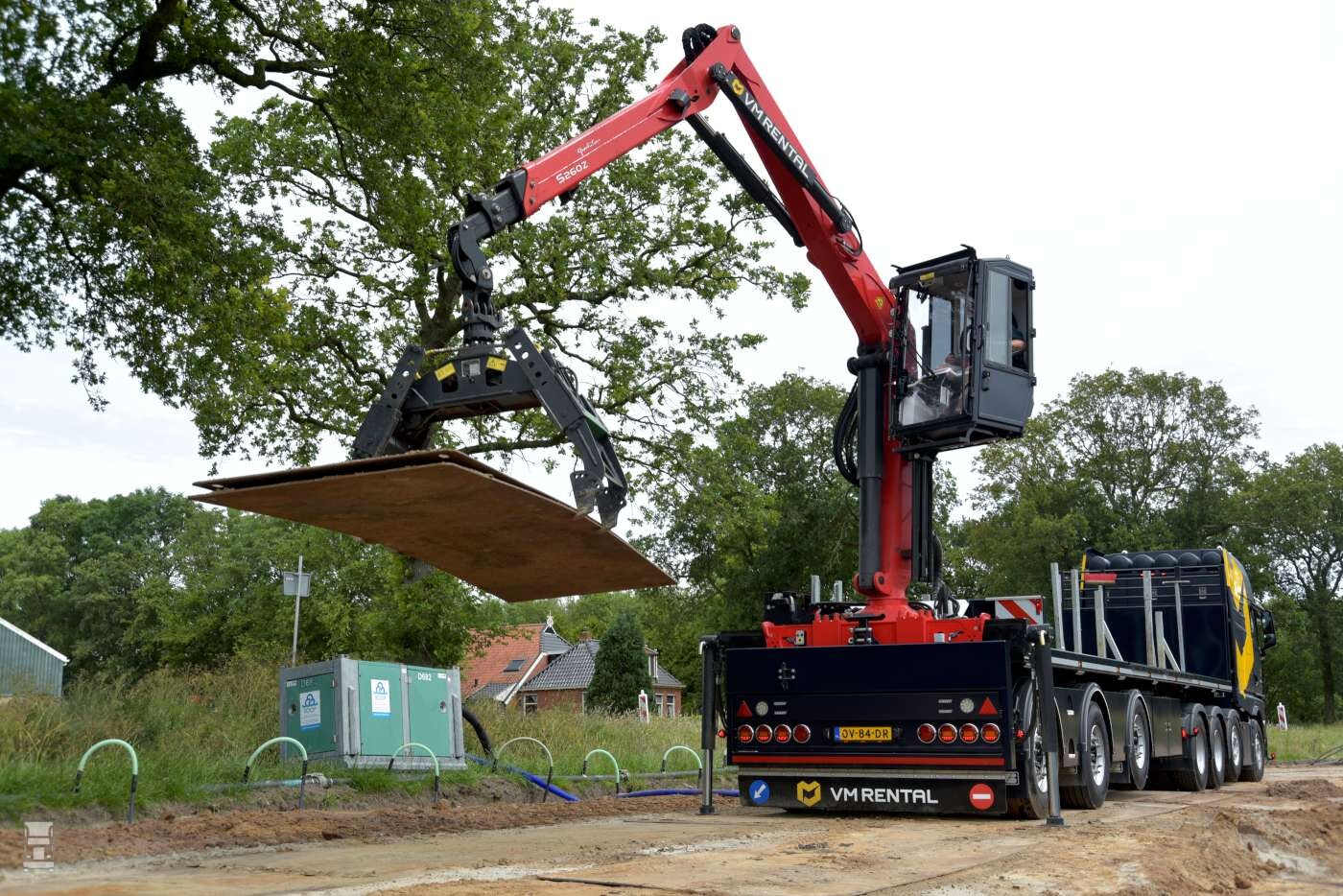 Voor het leggen van rijplaten is de truck uitgerust met RC-Drive afstandbediening. Daarmee kan de chauffeur vanuit de cabine van de autolaadkraan, of lopend naast de truck, de auto besturen en verrijden. Dit systeem is door WVT opgebouwd, uiteraard met sensoren die de omgeving bewaken. Verder is er een Brigade 360 camera met een tweede monitor in de cabine van de Palfinger autolaadkraan. De truck wordt voor rijplatenvervoer ingezet in combinatie met een KWB-oplegger met twee fusee gestuurde assen en twee liftassen.