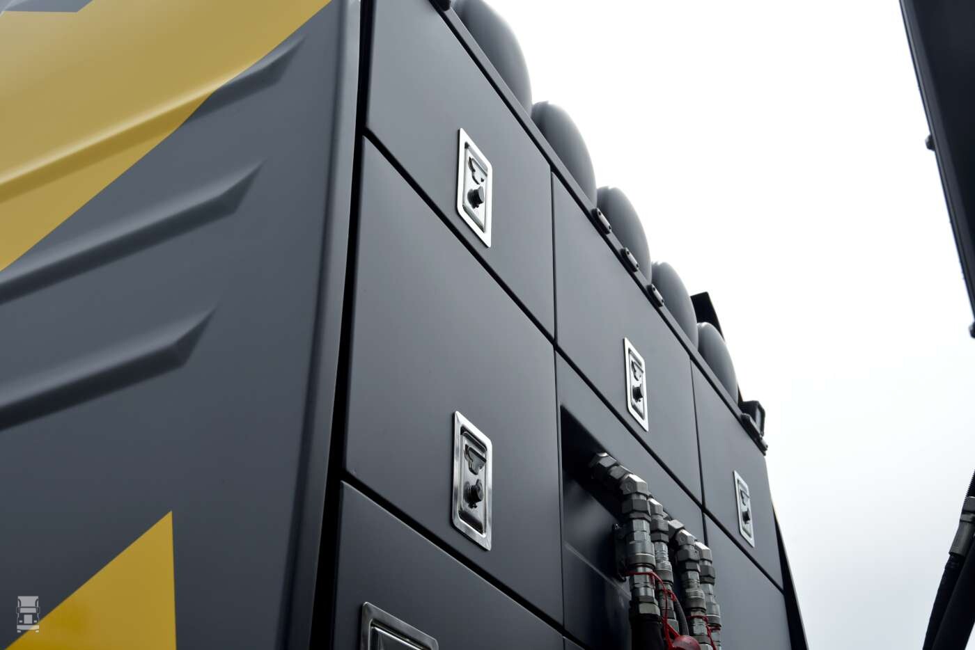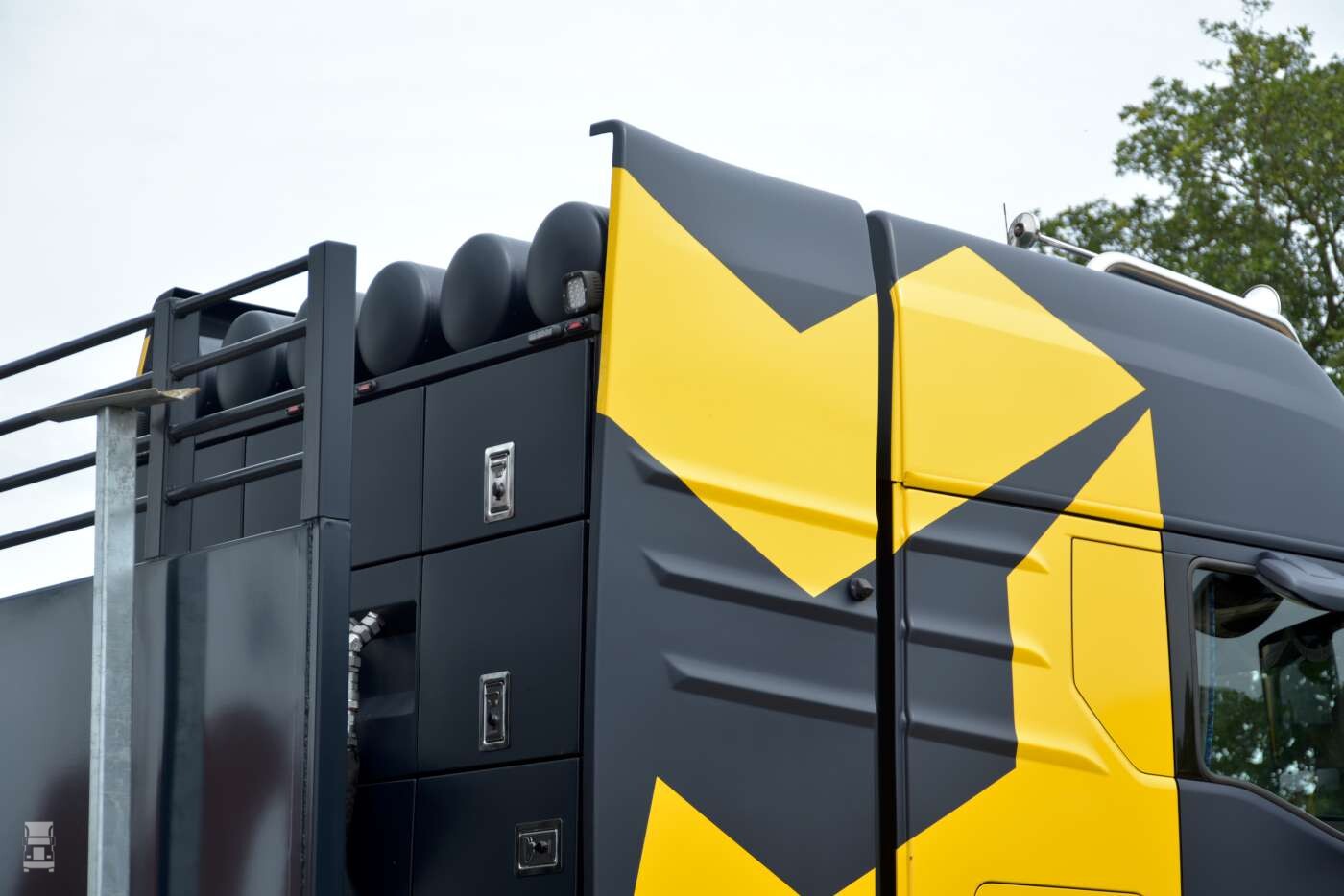De indrukwekkende vierassige trekker is bijzonder compact. Dat is het resultaat van een ombouw door WVT. De truck kwam af-fabriek als 6x4-trekker, waarna WVT een liftbare voorloopas monteerde. Tevens werden luchtketels en brandstoftanks achter de cabine geplaatst, in een zwaar-transportrek dat werd opgebouwd door Welling Truckstyling. Dat bedrijf tekende ook voor de opbouw van het chassis en de extra verlichting.