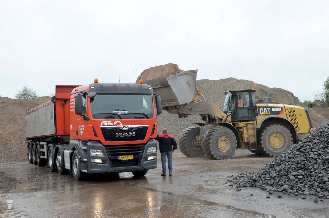 De trucks worden met name in de regio ingezet in combinatie met de kipper-opleggers. Gebr. Van den Brand & Van Oort heeft ook een groot aantal 8x8 kippers maar de kilometerkostprijs van een trekker met kipper-oplegger is altijd gunstiger. In de praktijk betekent het dat we met deze trucks meestal in het bouw- en sloopafval zitten”, maar we rijden er ook zand, grond en grind mee. Als de omstandigheden op de werken het toelaten komen we met een trekker-oplegger qua kosten altijd beter weg dan met een 8x8, maar soms gaat dat niet. We zullen dan ook altijd beide types voertuigen in de vloot houden.’’