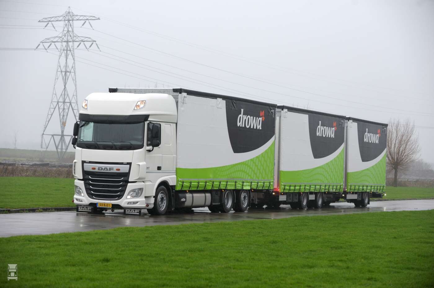 Drowa is met de nieuwe LZV combinatie bijzonder duurzaam bezig. Allereerst koos Drowa voor de uiterst efficiënte en schone DAF MX11 Euro-6 krachtbron, maar door meer mee te nemen per rit daalt de CO2 uitstoot per kubieke meter. Daarbij komt dat er dankzij de gekozen configuratie meer kans is op retourlading doordat ook zware lading nu meegenomen kan worden. ,,Tel dat bij het duurzame karakter van onze onderneming en je ziet dat overal over nagedacht is. Onze vloerisolatie met gerecyclede polystyreen zorgt namelijk al snel voor enorme besparingen op de stookkosten, en ook dat draagt bij aan een lagere CO2 uitstoot’’ aldus Kees de Vries.