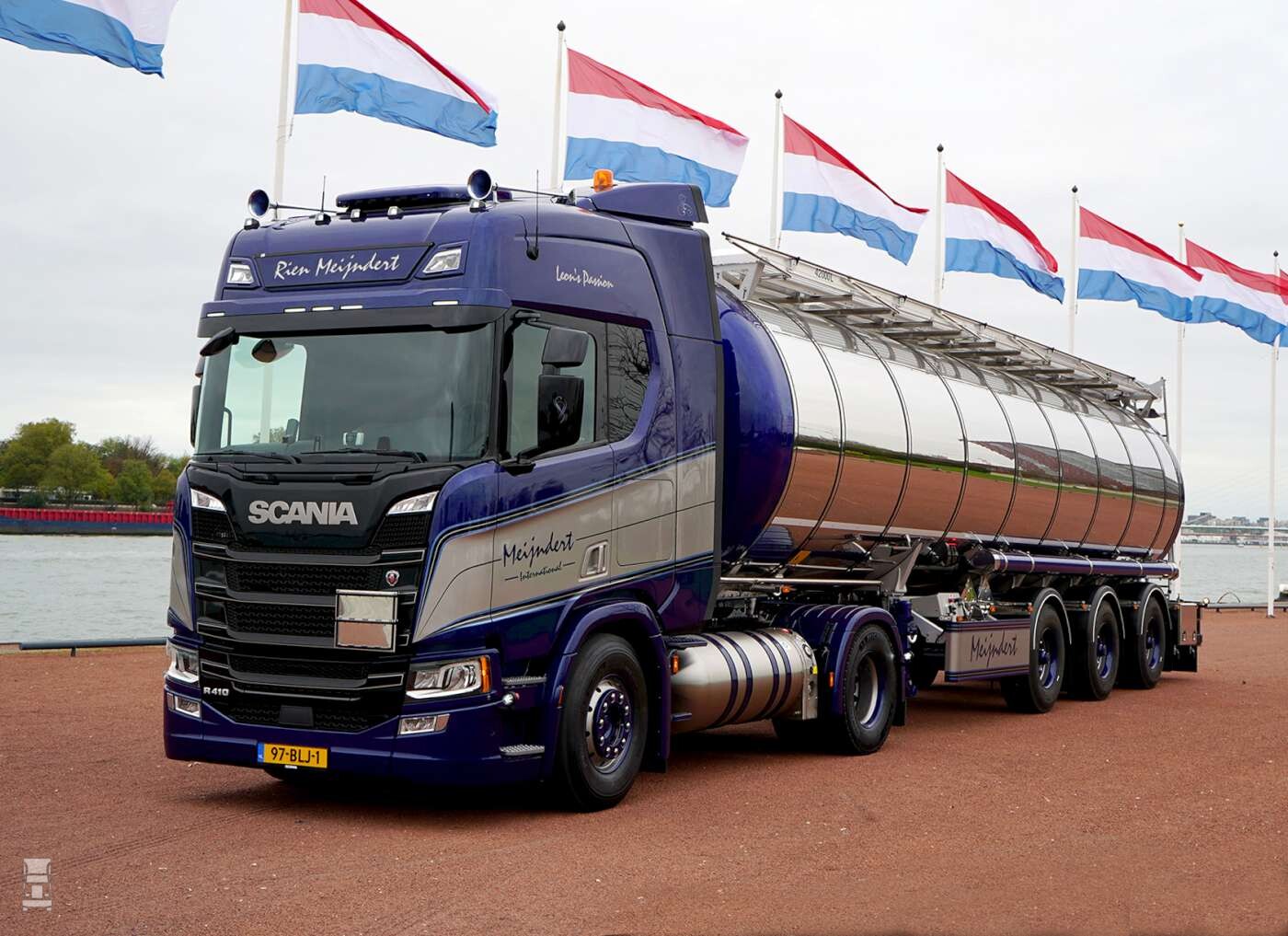 Rien Meijndert, van Meijndert Trucking uit Dordrecht, is ervan overtuigd dat LNG op de middellange termijn een belangrijk alternatief is voor diesel. “Op dit ogenblik bestaat 7,5% van ons wagenpark uit LNG-trucks en dat moet volgend jaar doorgroeien naar 20%”, aldus Rien Meijndert. “Wanneer wij investeren in nieuw materiaal speelt duurzaamheid een belangrijke rol in de afweging. Met LNG dringen we de CO2-uitstoot sterk terug en verlagen we de emissies. Naar mijn idee is LNG de beste oplossing om nú al stappen te zetten.” De tankvervoerder heeft geïnvesteerd in vijf nieuwe Scania R410 LNG-trucks in ADR-FL uitvoering. In 2015 verscheen het eerste LNG-voertuig in het wagenpark.