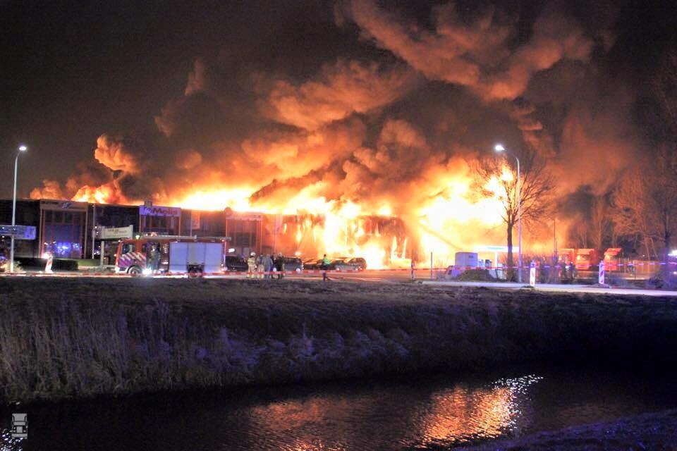 Het pand van Melis moet als verloren worden beschouwd. Een van de chauffeurs ontdekte de brand gisteravond, maar het vuur greep te snel om zich heen op ook maar iets van het pand te kunnen redden.