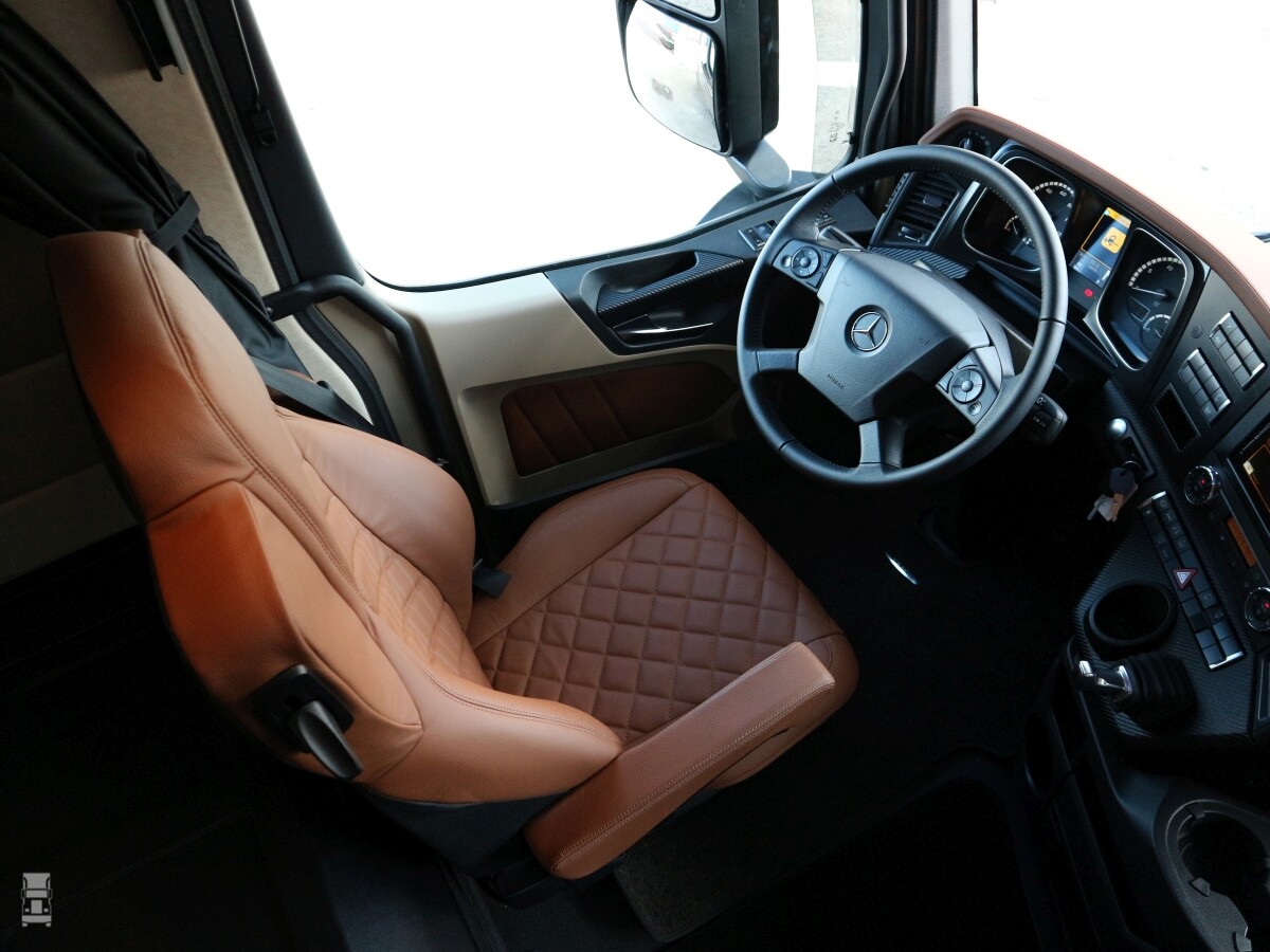 De Mercedes-dealer uit Maasdijk heeft een unieke variant op de Actros ontworpen. Het gaat om de Solostar, waarbij de bijrijderstoel is vervangen door een relaxfauteuil, die tegen de achterwand van de cabine is gebouwd.