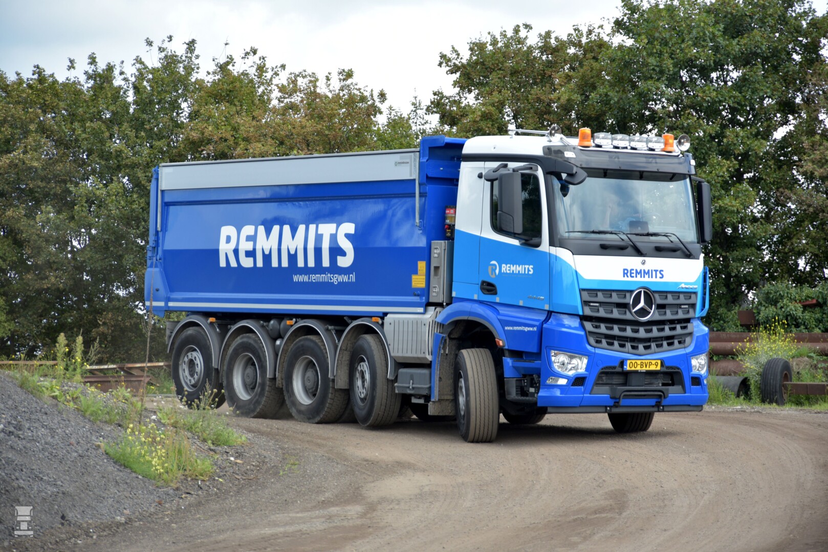 Voor Remmits is het de tweede Mercedes-Benz kipper sinds lange tijd. ,,Wij waren de laatste jaren op andere merken gericht maar die eerste Arocs bevalt ons uitstekend. De chauffeurs zijn enthousiast over het comfort en de ruime cabine en dat is belangrijk’’. Remmits, met vestigingen in Wijchen, Oss, Amsterdam en Eindhoven. Verder is het bedrijf mede eigenaar van een asfaltcentrale in Huissen. Remmits is actief als aannemer- en ingenieursbedrijf in de grond, weg en waterbouw voor bedrijven en lokale overheden. Het bedrijf heeft een eigen vloot van 11 trucks plus een DAF oprijwagen met een opbouw van Veldhuizen. De vloot omvat zo ongeveer alle denkbare configuraties, van 4x2 tot 6x4, 8x6, 6x6, 8x8 en nu dus ook 2 stuks 10x4 via Veldhuizen Trucks . Het bedrijf verzorgt het meeste onderhoud in eigen werkplaats, maar voor specifieke reparaties valt Remmits terug op de service van Mercedes-Benz dealer Louwman in Veghel.
