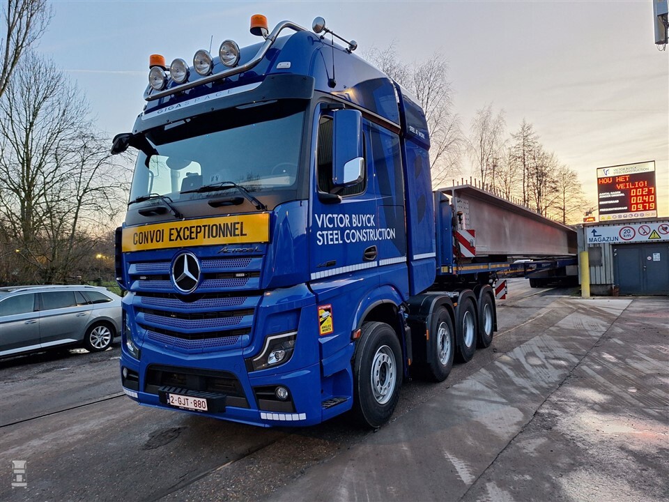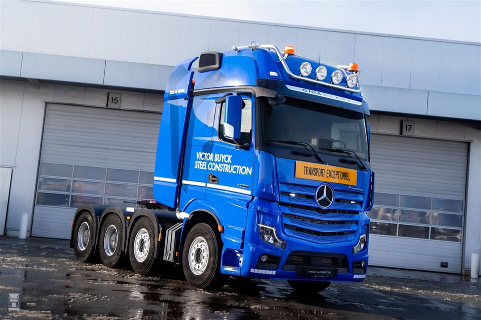 De nieuwe Mercedes-Benz Actros L van Victor Buyck is een bijzondere vrachtwagen. Oorspronkelijk was het een 6x4-truck, maar hij is door Mercedes-Benz omgebouwd tot een 8x4 SLT (Schwer-Last-Transporter). De werkzaamheden bij Titan omvatten de installatie van een extra as, evenals een rek achter de cabine met een brandstoftank, luchttanks, een uitlaat en een opbergkoffer. Hij beschikt over 630 pk en de grote GigaSpace cabine.