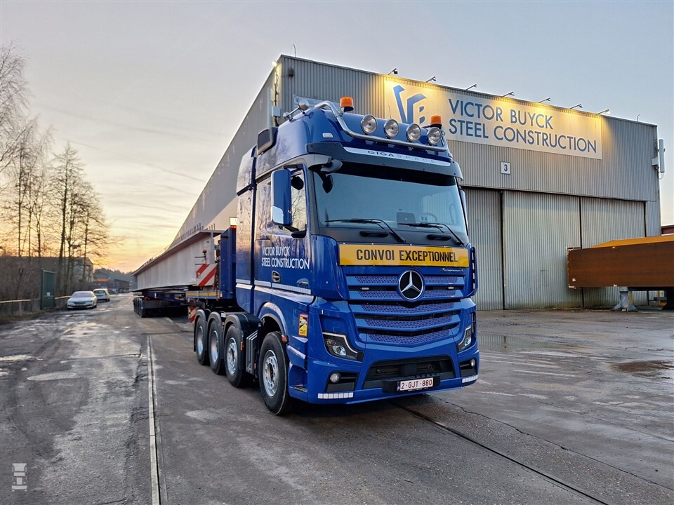 Victor Buyck Steel Construction zet de Actros SLT in voor het transport van zware en complexe staalconstructies. De nieuwe truck is al ingezet met een eerste transport van bouwdelen naar de site in Brackley voor het A43 Brackley Overbridge-project.