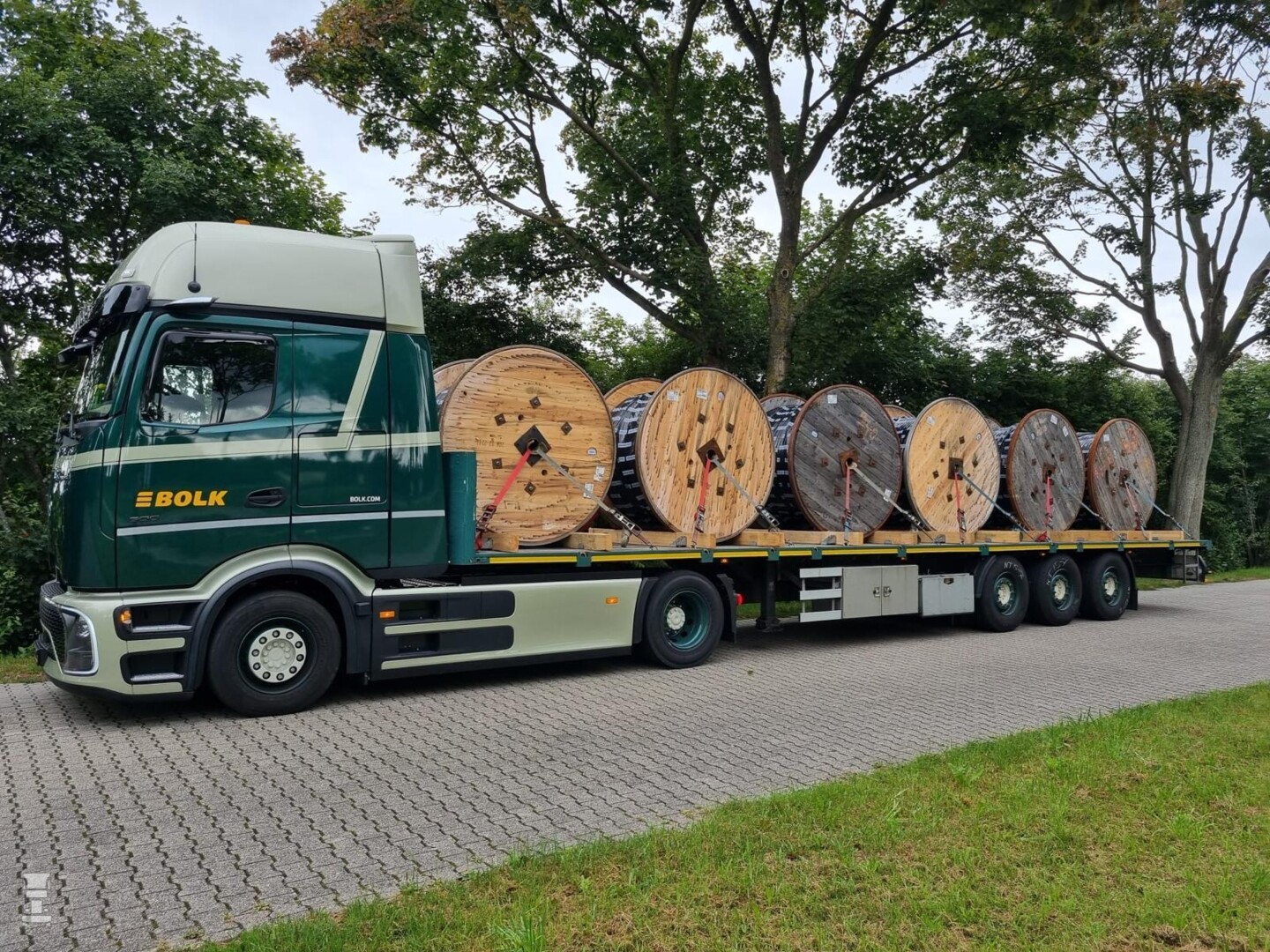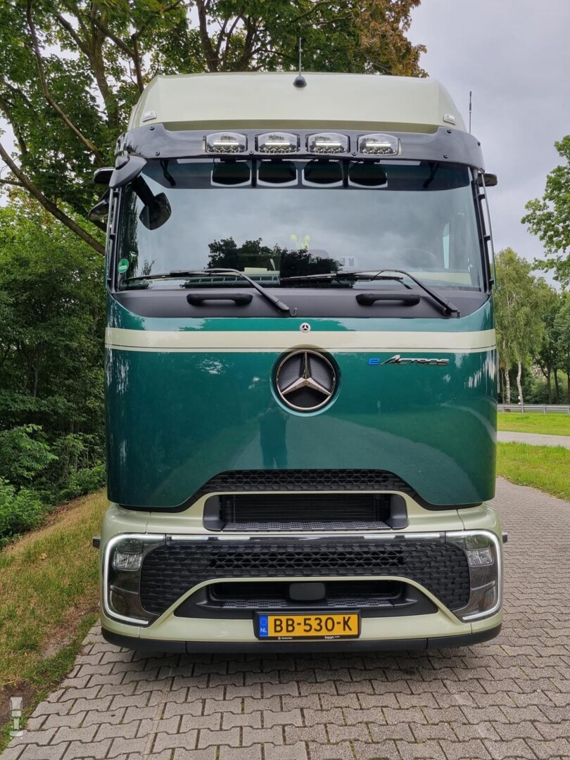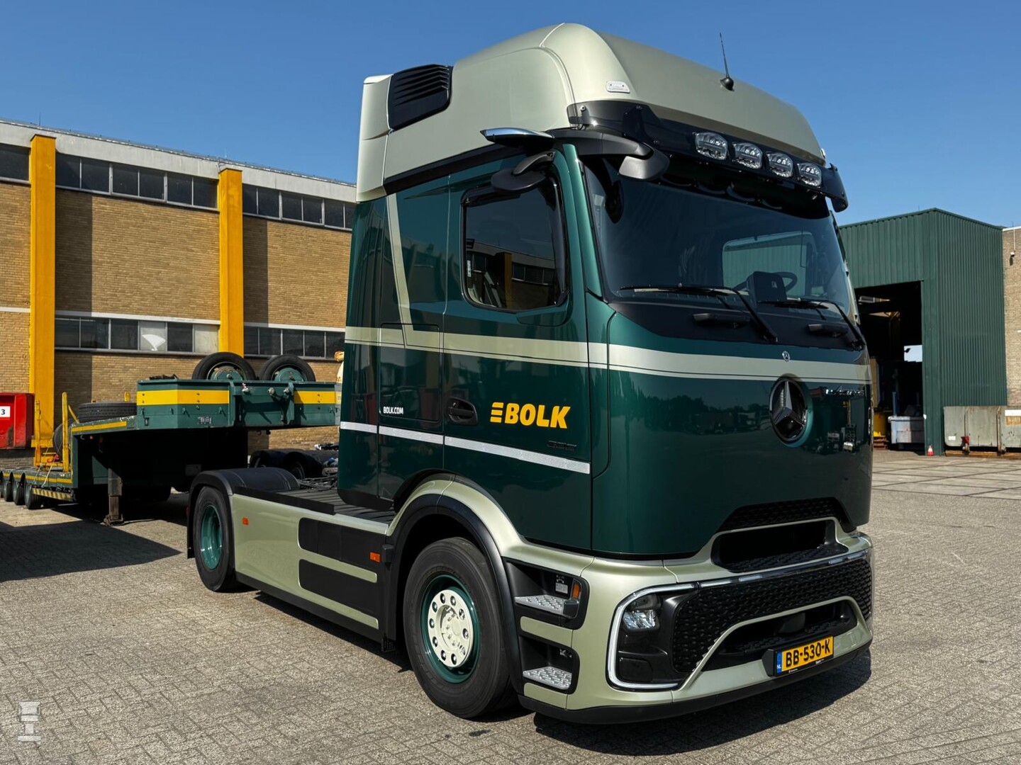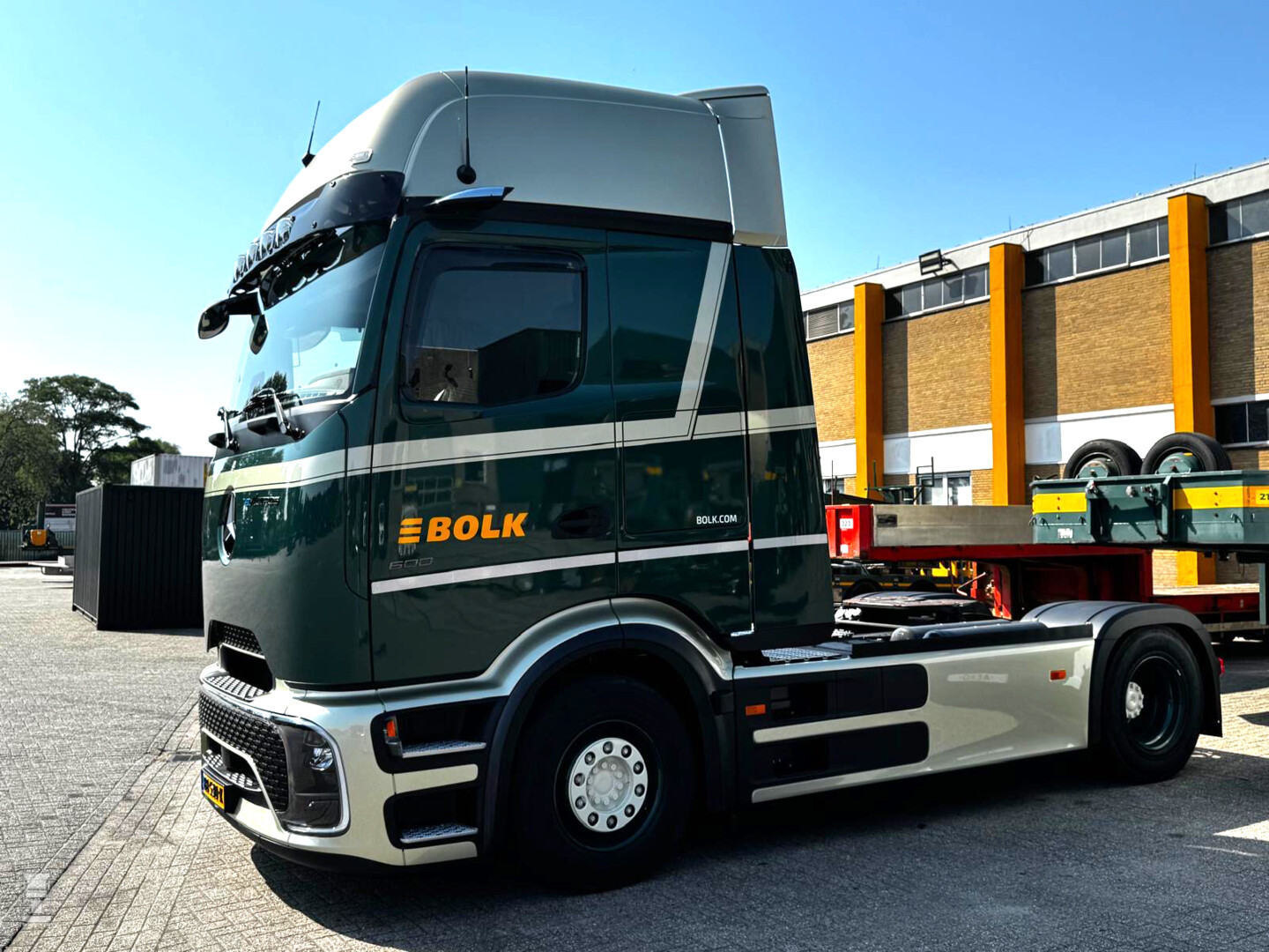 Het betreft hier dus een primeur, want Bolk is de eerste Nederlandse vervoerder die aan de slag gaat met de volledig elektrische eActros 600 truck. De trekker, met zijn moderne ProCabin GigaSpace cabine werd in de fraaie Bolk huisstijl uitgevoerd.