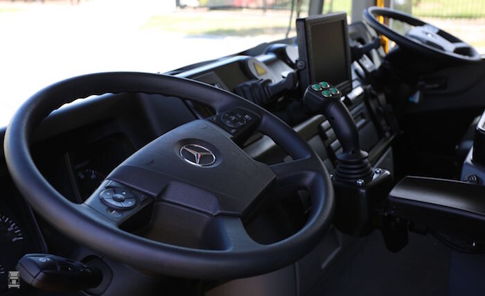 In Australië kan Mercedes sinds kort de Econic leveren met twee stuurwielen. Dit is geen eis van de vakbonden of zo, en het is ook geen grap: Met twee stuurwielen kan de chauffeur de kant van de Econic aan de stoeprand volgen en zo erop toezien dat alle kliko-bakken keurig worden opgepikt en geleegd. Daartoe moet de chauffeur af en toe even van plaats wisselen.
