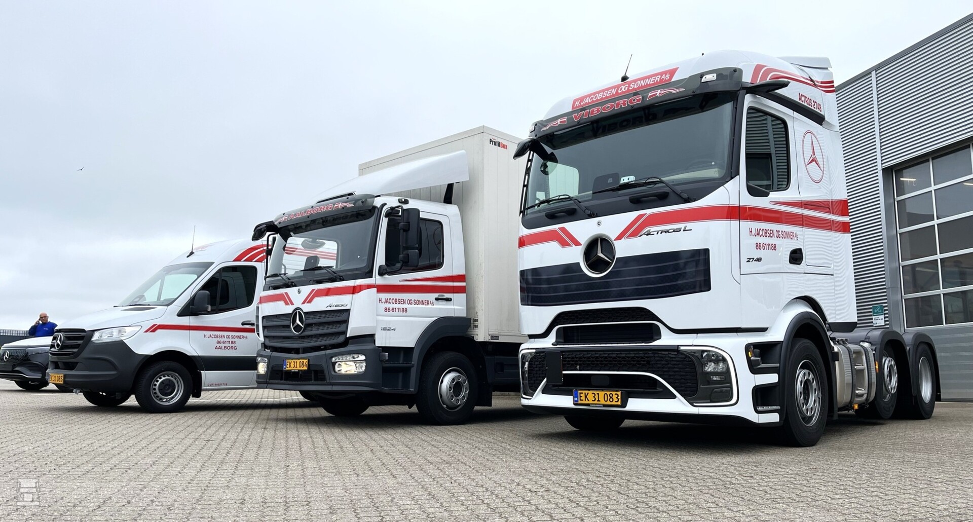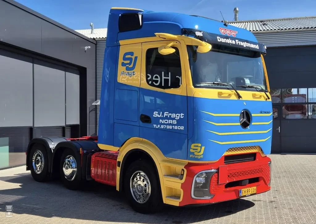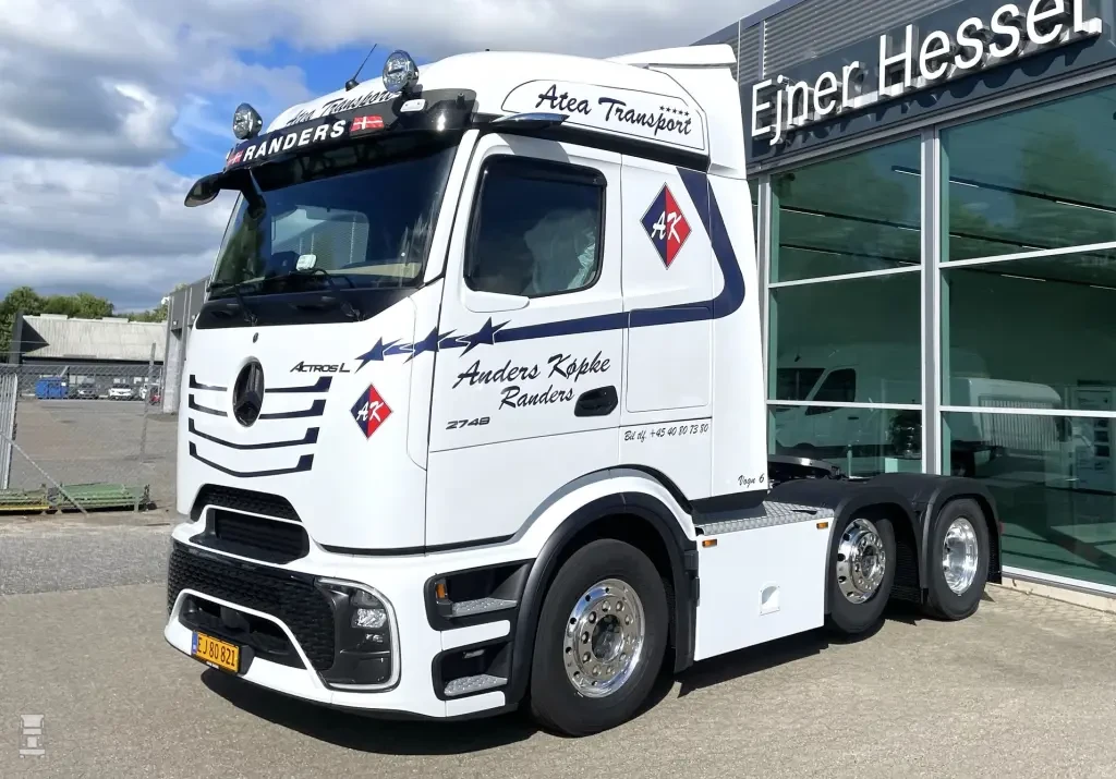 Eerder lieten we al een Deense Actros F zien met een grille, en dat vormde kennelijk als inspiratiebron voor meerdere bedrijven. Zo heeft het Deense H. Jacobsen og Sonner A/S gekozen voor een grote sticker met een rechthoekinge grille, waarmee de moderne Actros een klassieke uitstraling kreeg. Geslaagd of niet? Jij mag het zeggen.