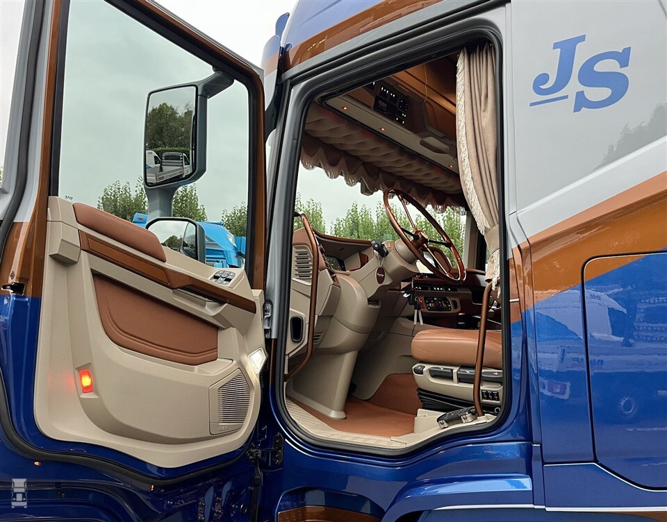 De nieuwe DAF van Casa di Slob is tot in de puntjes afgewerkt, met fraai spuitwerk en sublieme details. Verschillende partijen maakten dit mogelijk, zoals Verspui Trucks, spuiterij Dubbeldam, Pennings Interieurs en TSW Truckstyling. Er zijn te veel mooie details om op te noemen, maar kijk eens naar de toplampen op het dak, de mooie zonneklep en het bronskleurige vierspaaks stuurwiel. Met zo’n DAF kun je thuiskomen!
