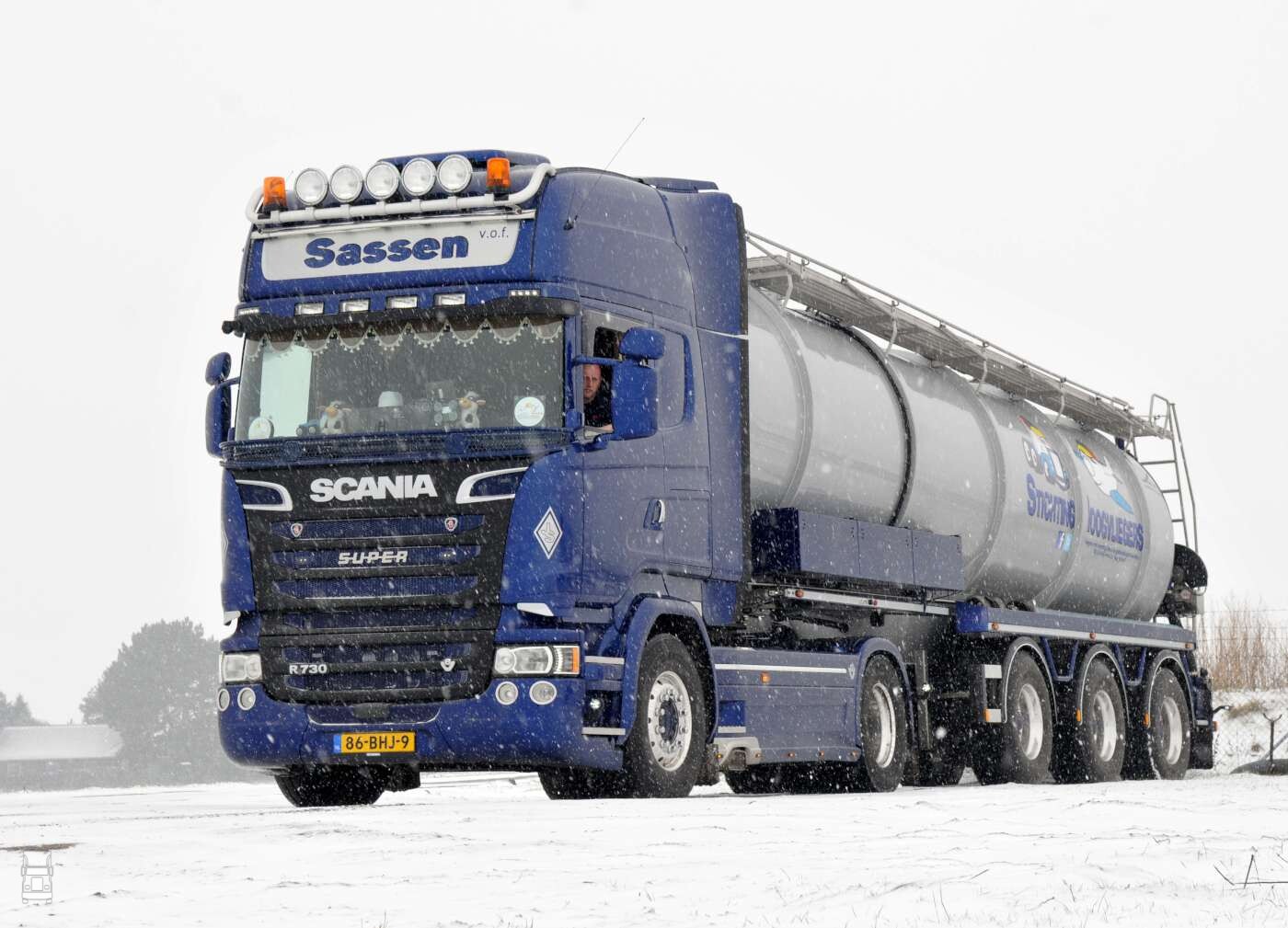 Al bijna weer een jaar geleden ging BIGtruck tijdens een winters dagje op stap met Jans Sassen. Jans rijdt met een fraaie Scania R730 met een D-Tec tankoplegger met een onwelriekend goedje. Met 730 pk over gladde wegen, gaat dat goed?