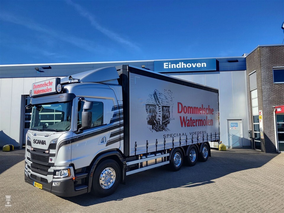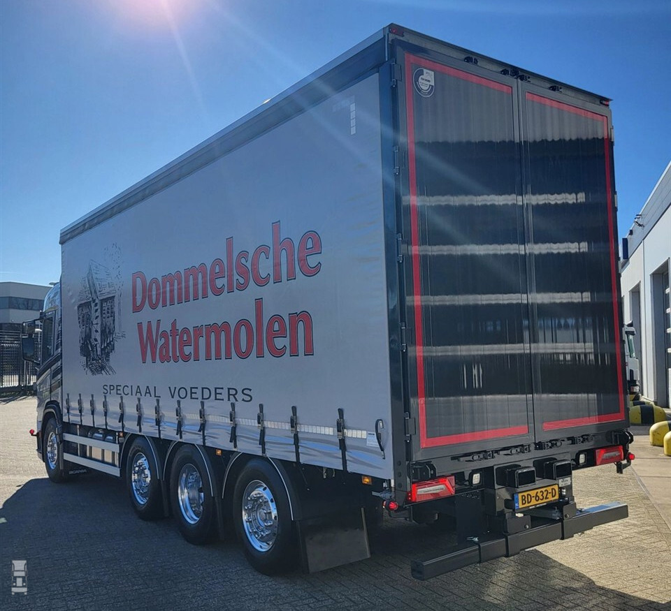 De Dommelsche Watermolen zet de Scania voornamelijk in voor het vervoeren van diervoeders, die in de eigen molen gemaakt worden. Deze voeders zijn voor honden, katten, paarden, koeien en zelfs vogels. De voeders worden geleverd in Nederland en Belgiƫ. De nieuwe bakwagen werd geleverd door Scania Eindhoven. Roefs Middelbeers is verantwoordelijk voor de carrosserie. Het spuitwerk werd verzorgd door Beukersgroep Westerhoven. Een bijzondere 8x2 voor een bijzonder bedrijf.